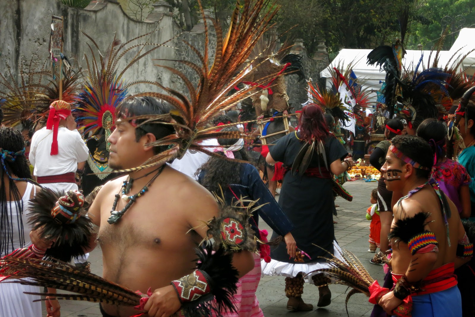 This is the Coyoacan Artist Neighborhood that featured a Saturday Bazaar that was one of the largest in Mexico. We wandered around lost without a map until we encountered the Mercado and the Bazaar. It encompassed the whole center of the neighborhood including a large park where a “pow wow” dance was taking place.Valentine’s Pow Wow Video?