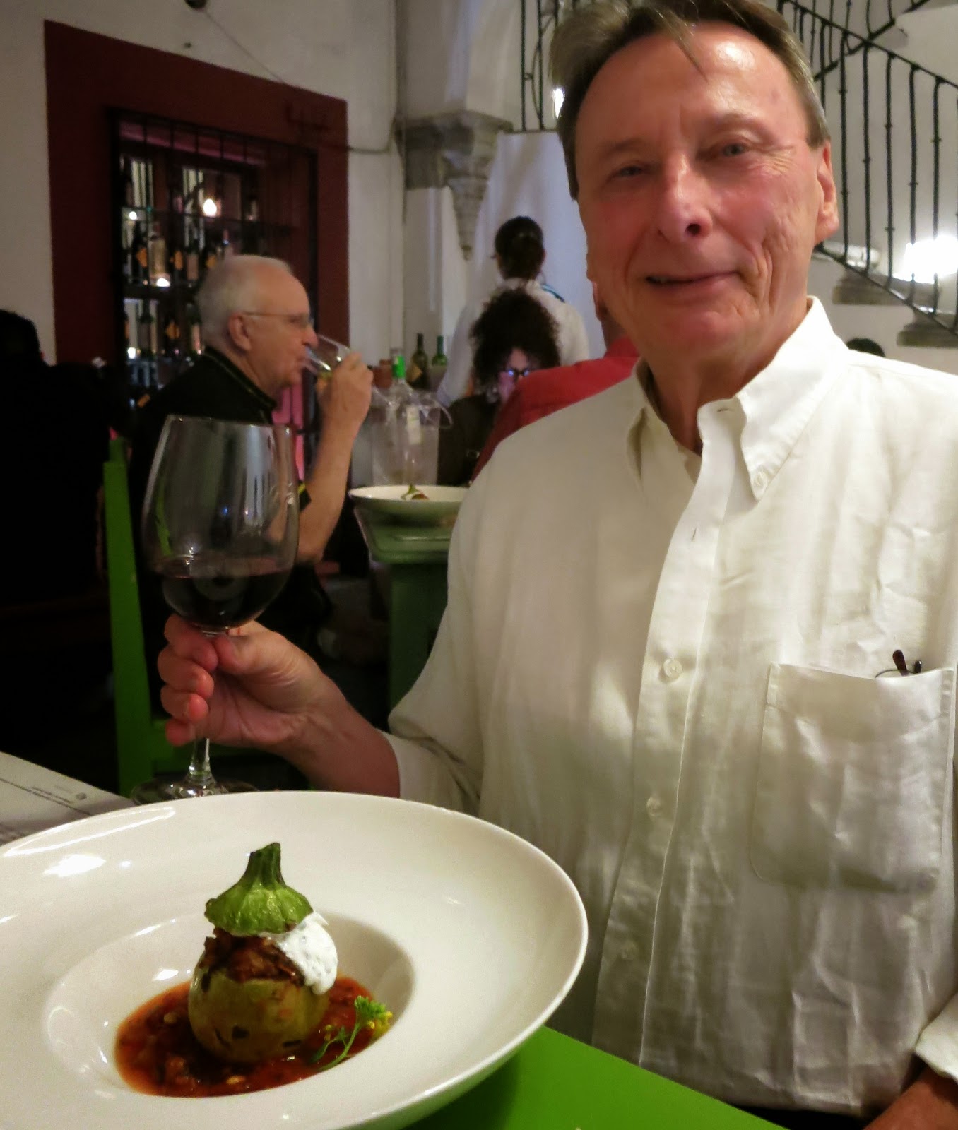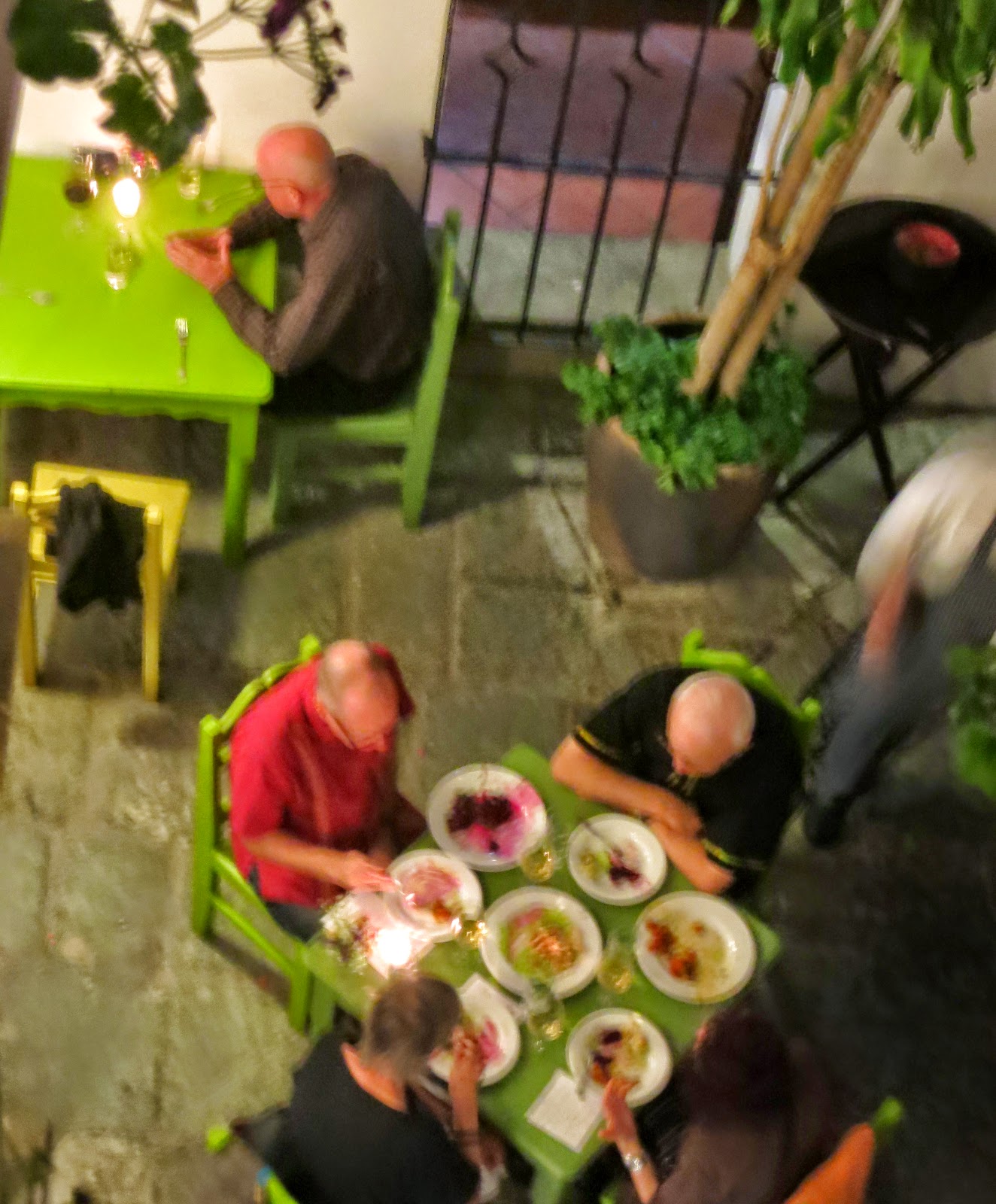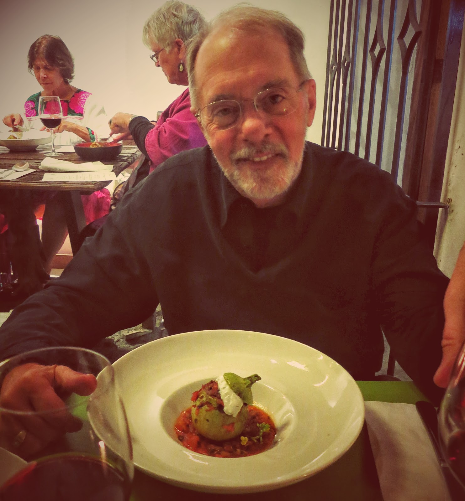 Friday I booked a 6 course Marroqui dinner at Origen Oaxaca, a fairly upscale restaurant I hadn’t been to. The Chef, Hagar Aviram owns and operates VagabondCookery.com  She contracts out to people and sponsors her own events with the help of El Sol y la Luna and Origen restaurants.  There was a large group of gringos from Las Mariposa’s B and B along with Richard, Mike and myself that attended.  It was 400 Pesos…$28 and you pay for the wine.