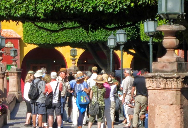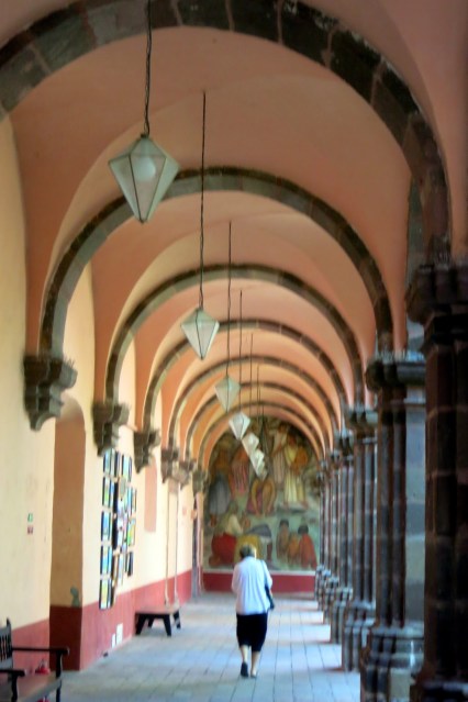 I retired around 10 pm I think and slept well. The light woke me at 7am and after coffee I was off for a 10 am walking tour of SMA. I took a Taxi. The city is built on the side of a mountain 6500 feet up. Lots of cobblestones and straight up streets make it difficult for me. The air is clean and the exercise good but my “Intermittent Claudation” causes my legs to cramp and my feet to fall asleep. My one lung makes breathing a bit difficult but that doesn’t pain me. The taxi arrived early so I decided to have Eggs Benedict with Salmon Salsa with Cappuccino and fresh squeezed Grapefruit juice. While I was waiting for the slow cook, the tour group formed and left.
