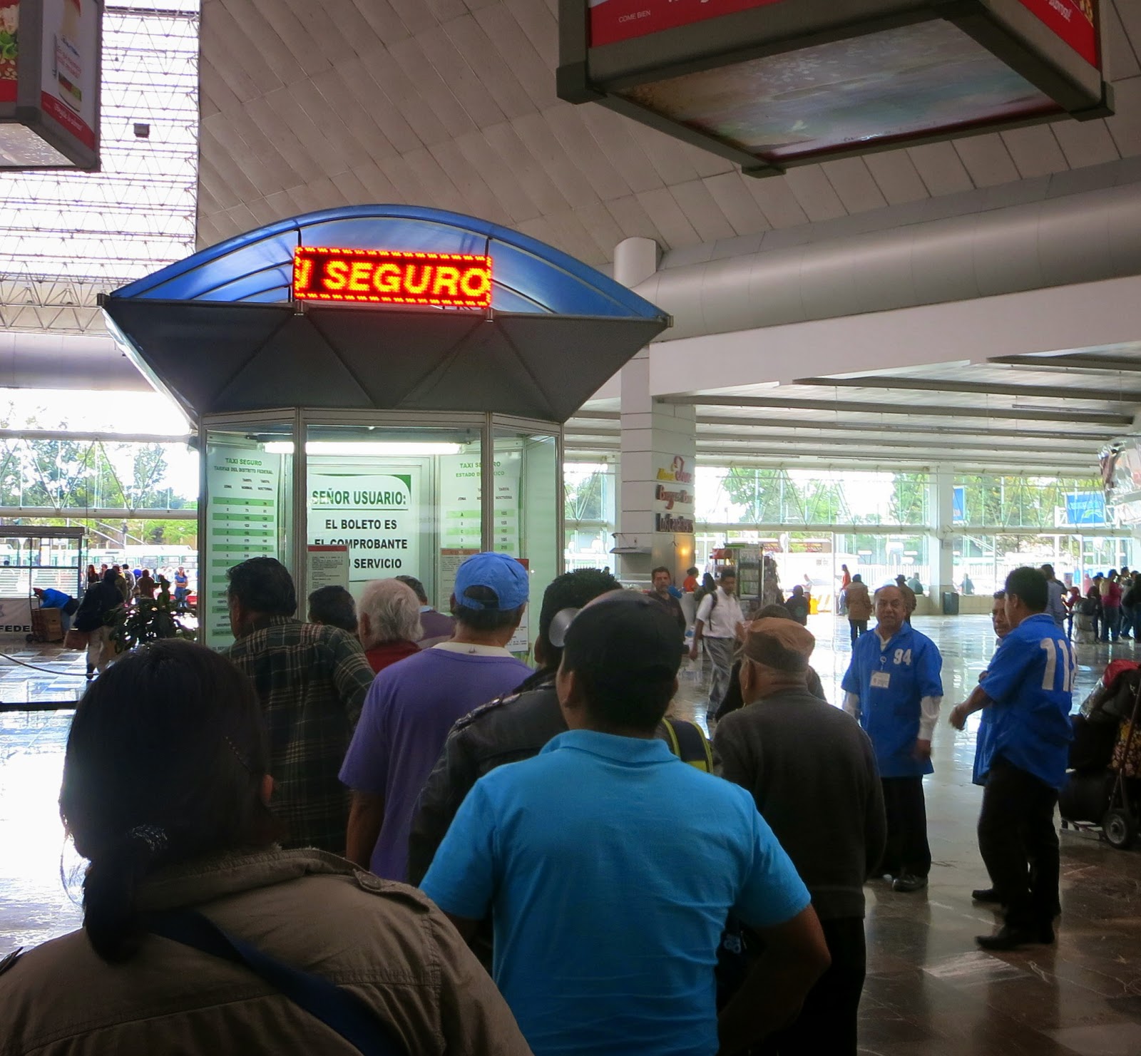 I was up by 8 am and woke abruptly in a cold shower. I had my usual, fruit, All Bran and yogurt before bidding Don goodbye. I caught a Taxi right away and was at the Bus Station by 8:45. I took a nap on the bus. The bus had to take a detour because of construction so we didn’t arrive until around 5 pm. Mexico has stands in all the airports and bus stations that you have to stand in line in to get a ticket for a Taxi.