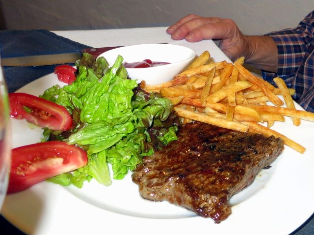 Still hungry I offered the other David a drink if he would join me at BERLIN for dinner. He had the steak and I the Bratwurst. The meal was excellent and we got back around 8 pm so I could get to bed early for my 10 am bus ride to Mexico City.