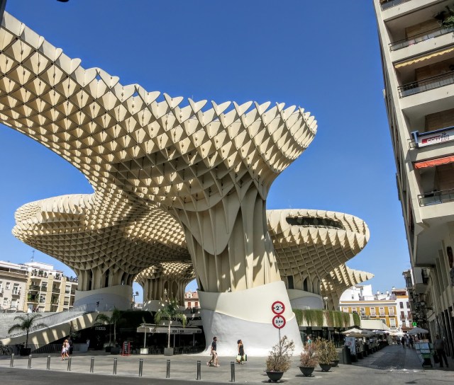 Hotel Baco had our room waiting. We dropped the luggage and went to visit and new Park called the Mushroom which was near by. A bite to eat then a taxi to the Historical Center of Seville where we walked around the Catedral , Square, and alleys before returning for Happy Hour at the oldest Tapas bar in Spain that opened in 1670.