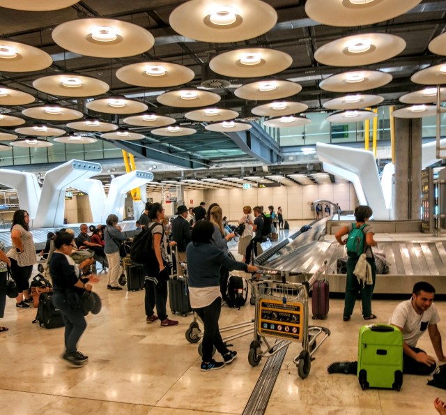 We landed in Spain around 11:30 am, went through immigration with no problem, then waited, waited and waited until everyone had their bags and were gone….except me. I was on my way to Iberia desk to file a lost luggage report and looked over at a far carousel to notice my bag, all alone, going round and round???