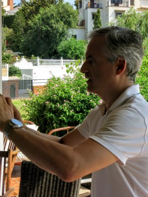 I made a few wrong turns after that but my Google Nexus5X phone’s GPS brought me to the front door of my host, Carlos Sedano. We entered his garage/trophy room, Carlos races anything with a motor, and up stair to our room for two days. He prepared our dinner of Andalusian Gazpacho, Salad, and Potato Salad with Meat…very nice evening catching up on our first meeting 9 years ago in Valdelvilla English school. He had a great album of our one week class in the mountains of Spain.
