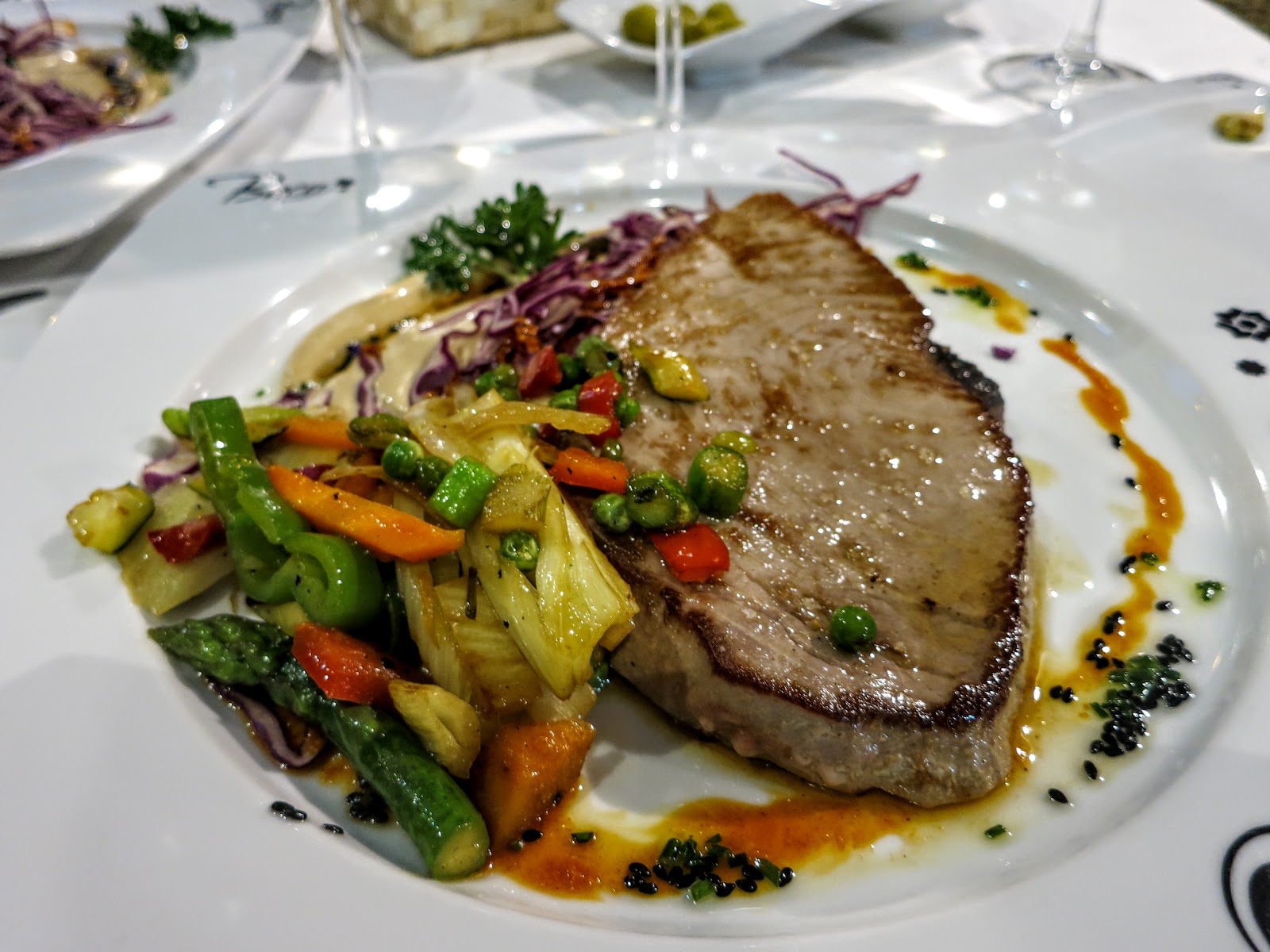 Our dinner was fantastic. We both had the fresh Tuna again . We retired early and in the morning taxied to the train and back to Madrid where Vaughtown is hosting a Tapas and Wine get together for me and the rest of the students and teachers for the following weeks school session in the country.