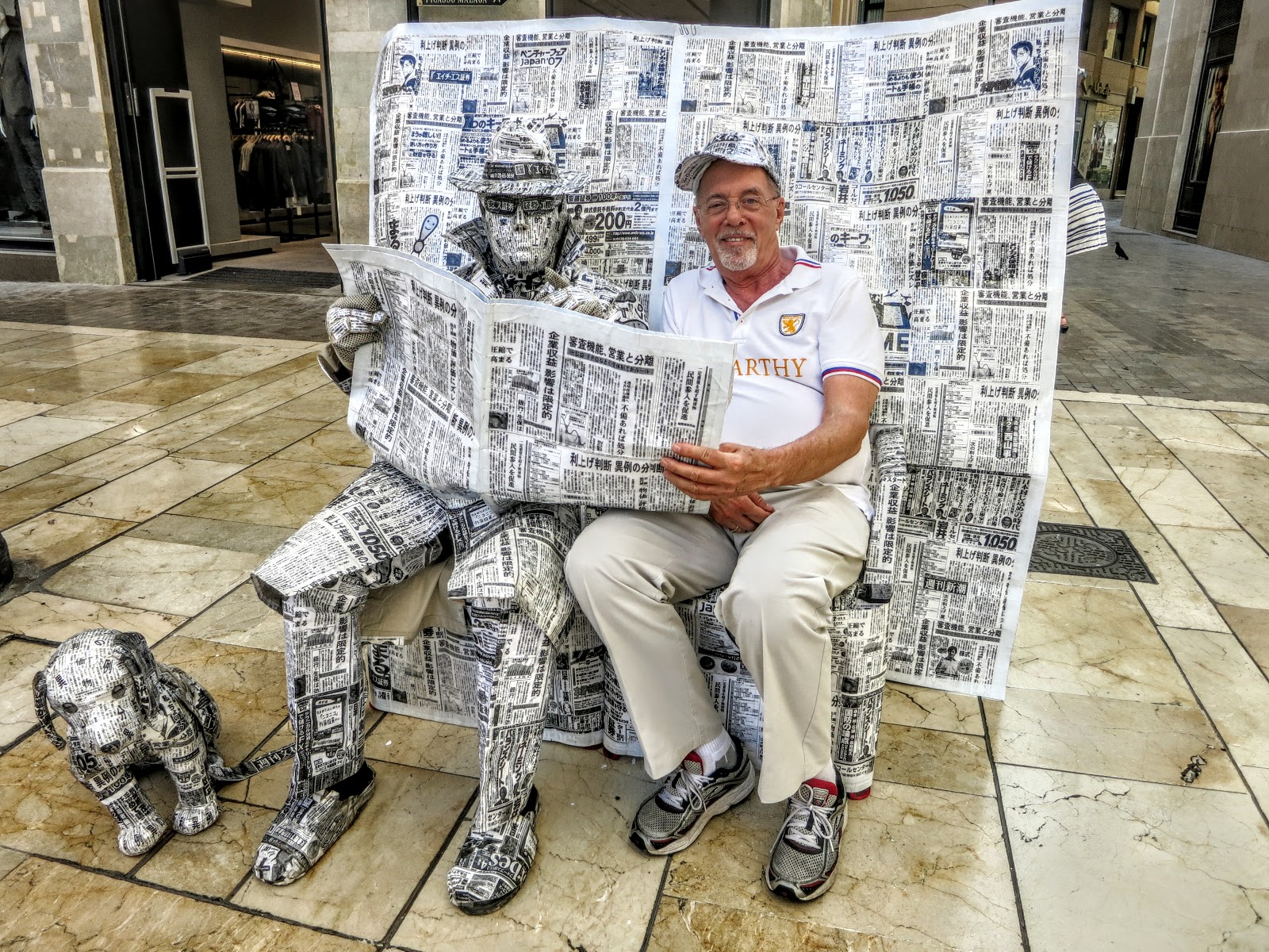 The next morning we had the complimentary breakfast at a bar-cafe down the street consisting of a cellophane wrapped dry roll, coffee and OJ then checked out and picked up the rent a car. I turned the wrong way and while backing up hit my side mirror on a sign. I didn’t notice any damage so headed for Malaga where my friend Carlos had graciously invited us to stay at his home, meet his family and show us the home town he grew up in.