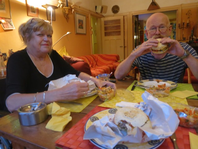We chatted a bit and the same bartender was there with one other customer. His name was Brian and his mother was American and his father Dutch. He knew a lot about Mexico, Spain, Vietnam…for a young man. He said history was a hobby of his. I returned in time for dinner. Hamburgs and Cole slaw, delivered by the BurgerMiester and the best I’ve ever had!