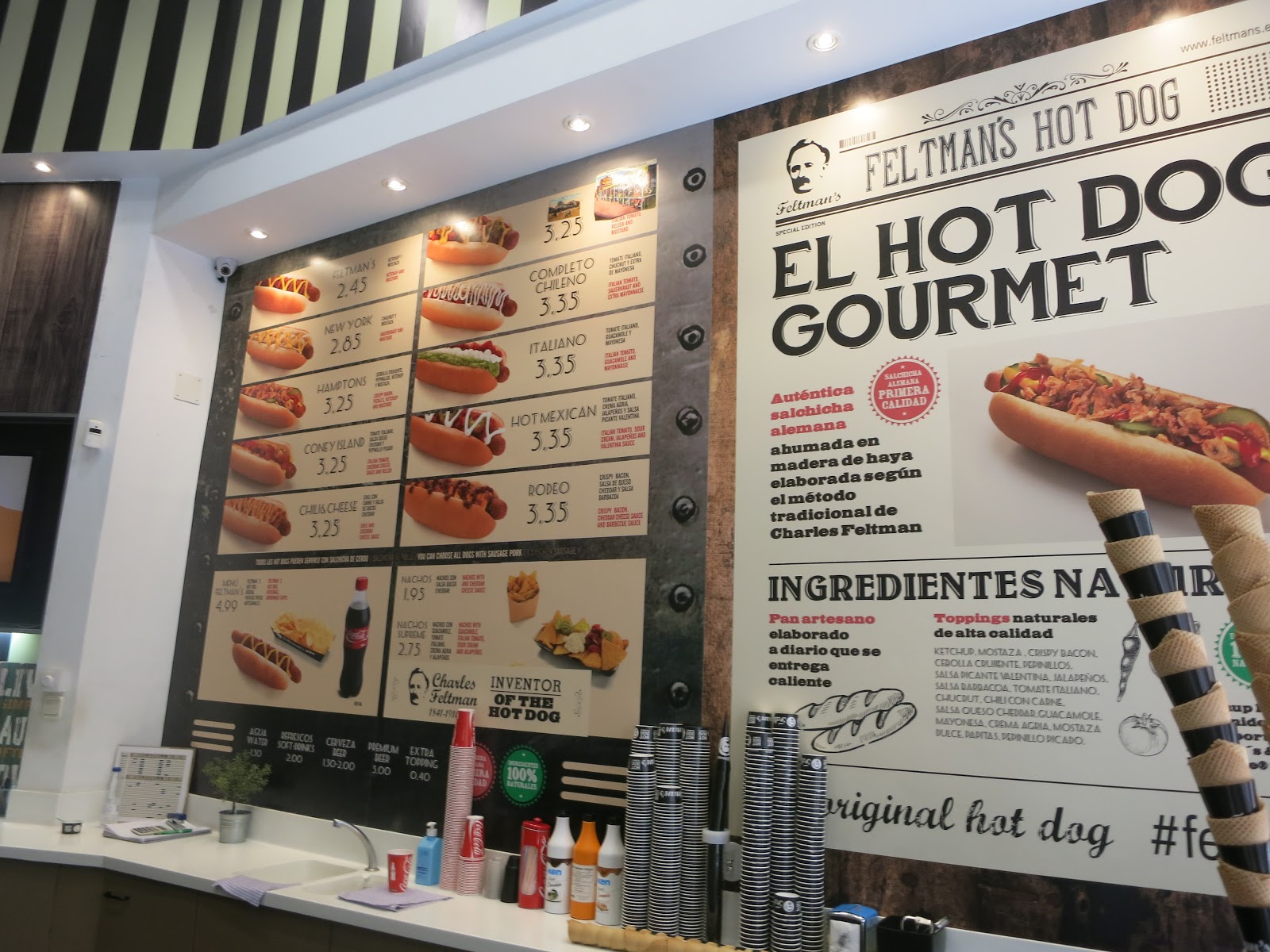 Then I remembered the man who suggested I go to the Palace Real or Santa Ana to see the one statue of the horse and rider given to King something or other the 4th by Mexico that was one of the best in all the world. After traveling back to the Plaza Major, the San Miguel Plaza , then on through a Maze of streets I reached the Palace to discover a waiting line and admission prices. I went to information and discovered the horse was nearby in the Palace Park so took my pictures but was too exhausted to walk uphill all the way home so decided to take the Opera Metro stop to the Sol Metro…but saw a Costa Coffee Cafe advertising the most impressive cup of coffee ever. I asked for the most impressive cup of coffee ever and the Cashier was perplexed…Cappuccino, Latte, large , small, espresso…I replied no just the most impressive cup of coffee you have…black and for here. I wasn’t as good as Lilly but came a close second so I ordered a Brownie and blew my diet. I then took the Metro to Sol and for dinner I went to Feltman’s Hot Dog stand. He invented the Hot Dog in 1850 ish in NYC. I ordered the NYC Hot Dog for 3 Euros and left full for Tapa’s and Booze close to home.