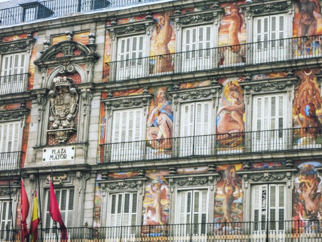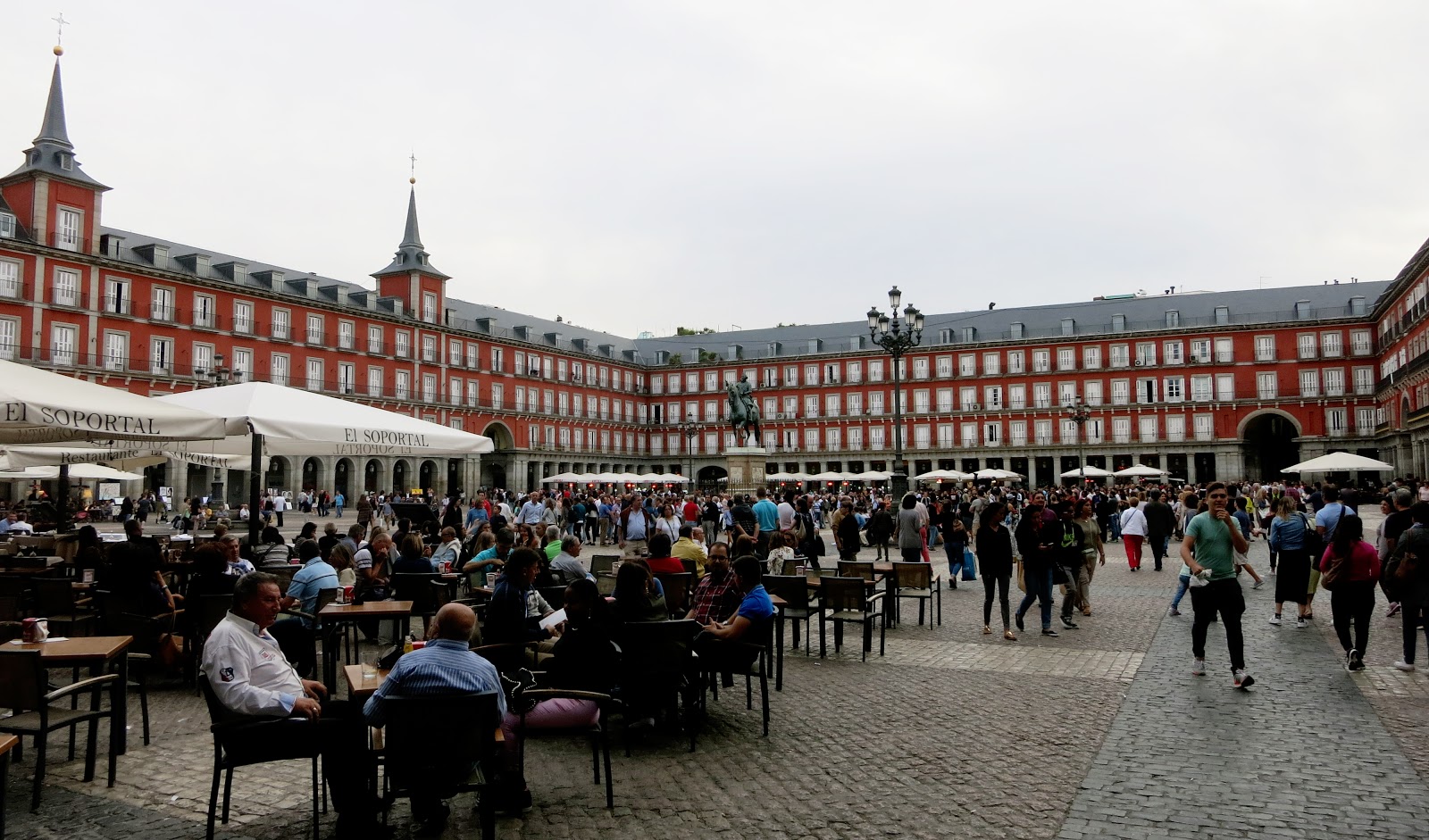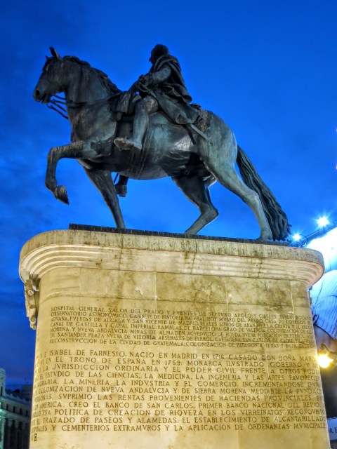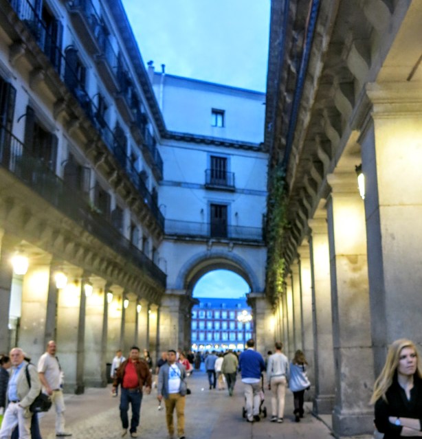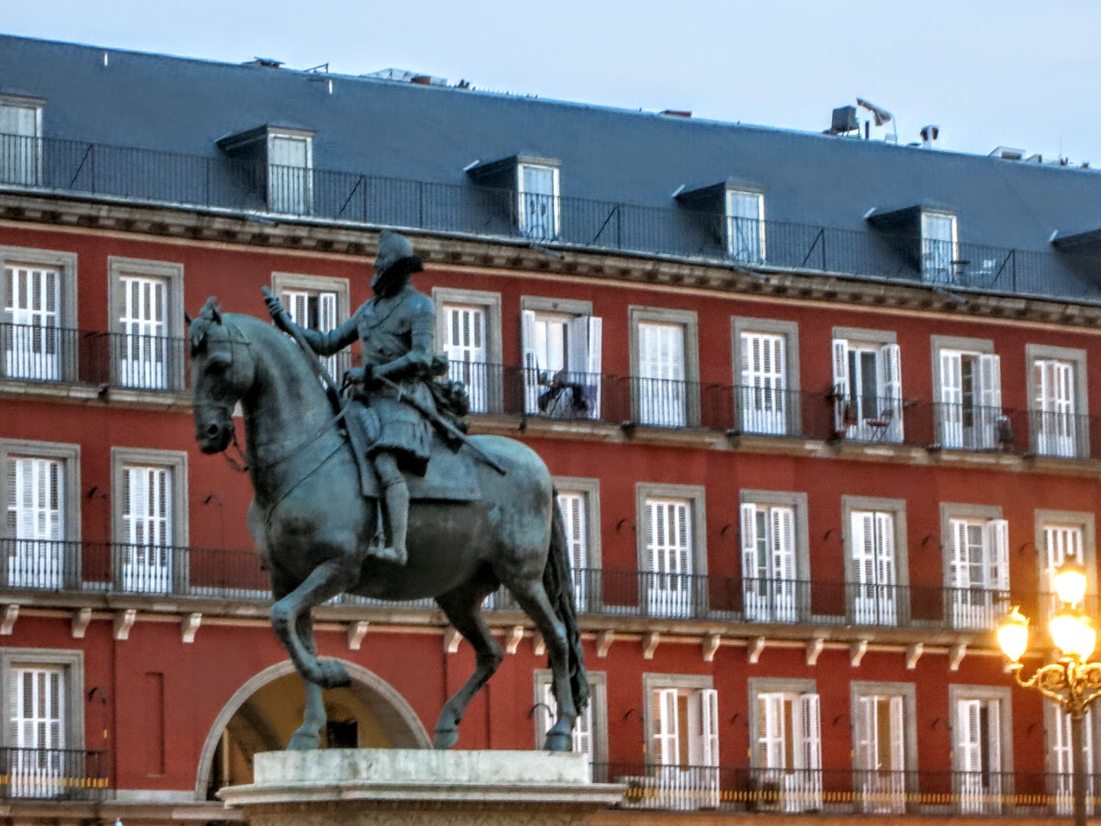 I made it to the Hostel Victoria, lightened my load and headed for the Puerto de Sol but got lost on the way??? I don’t know how but Feldman’s Hot Dog stand caught my attention. I made a note for later then got back on track and after maneuvering the crowded Puerto de Sol I arrived at the Plaza Mayor. None of the restaurants appealed to me as they all had the same menu with photos posted outside….all exactly the same. I was taking some photos when a man approached me and started speaking Spanish…are you from Mexico…this is the second time when I wore my cap from Mexico. He spoke English and I now realize the other man was conveying the same information. The Statue of the Horse with King Phillip the 3rd in the Plaza Mayor was a gift from Mexico. It is not notable as the style was not artistic…but if I go to the Palace, there is another gift of another statue similar of King Phillip the 4th that is done in Gothic style and is considered the best. The other man was telling me about the Statue of a man on a Horse that was in the Puerto de Sol that was also supposed to have been a gift from Mexico. I’ll have to Google it. Both men were around my age and the last mentioned that these statues were gifts to Spain when Spain was one of the most powerful Nations in the world….but alas that is not the case today. Spain is in trouble, he said.
