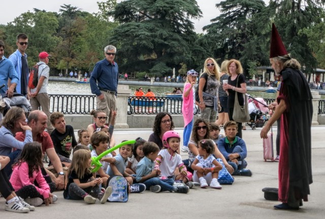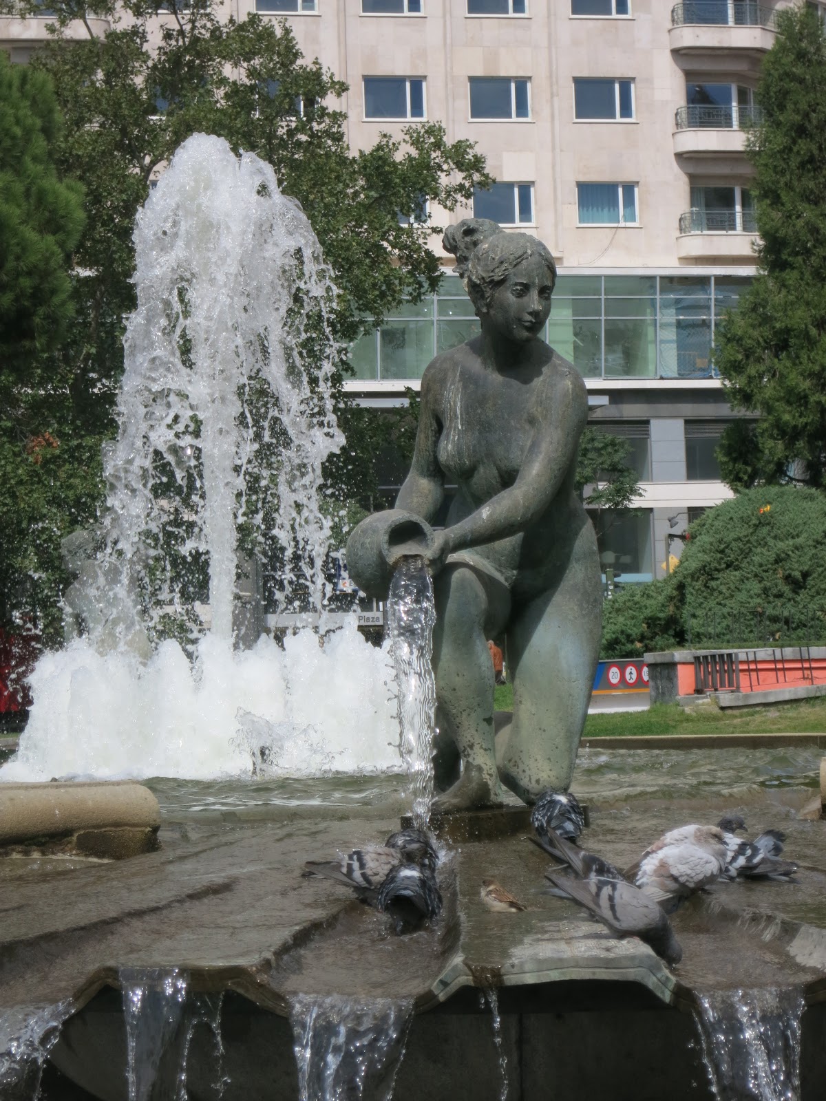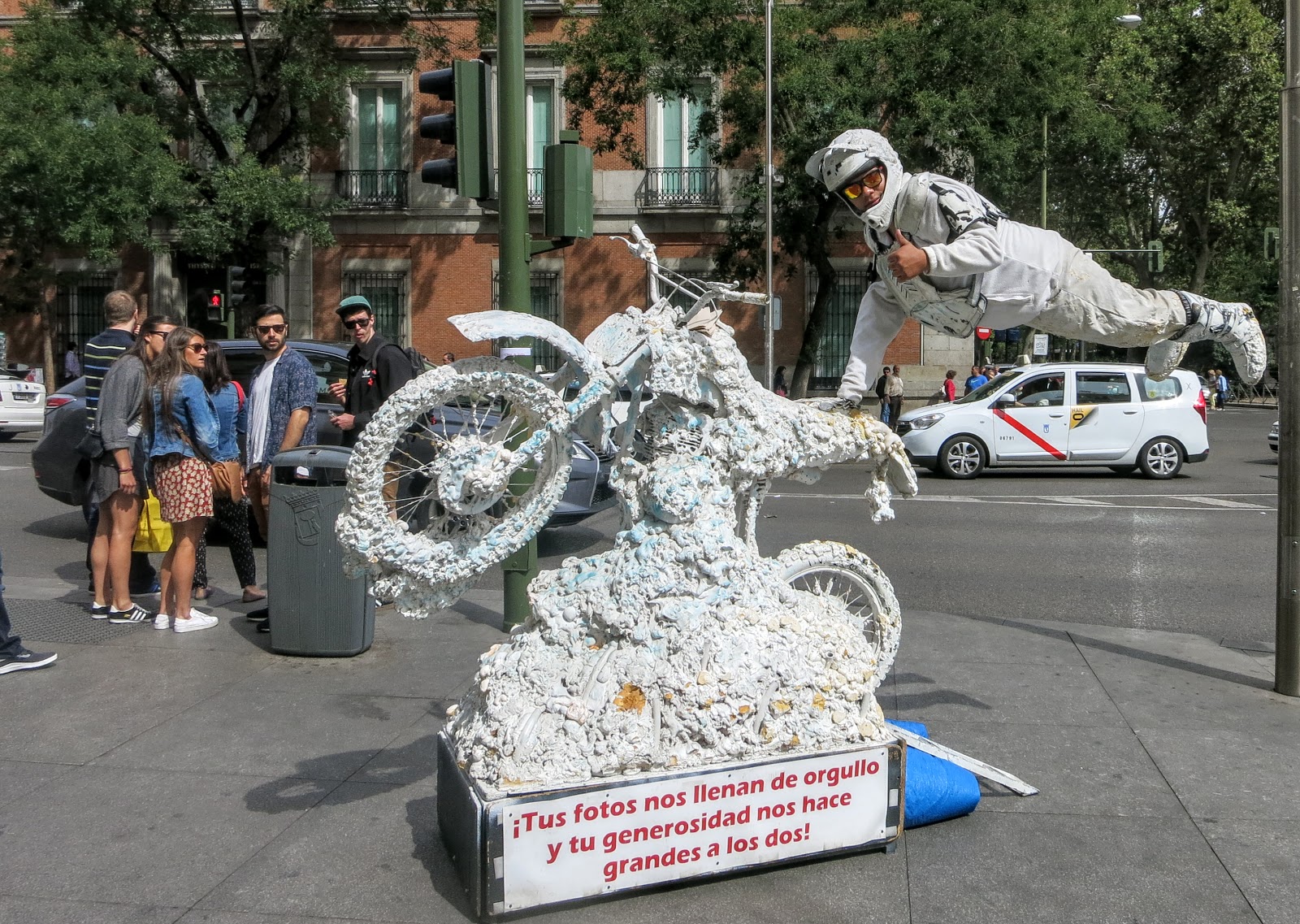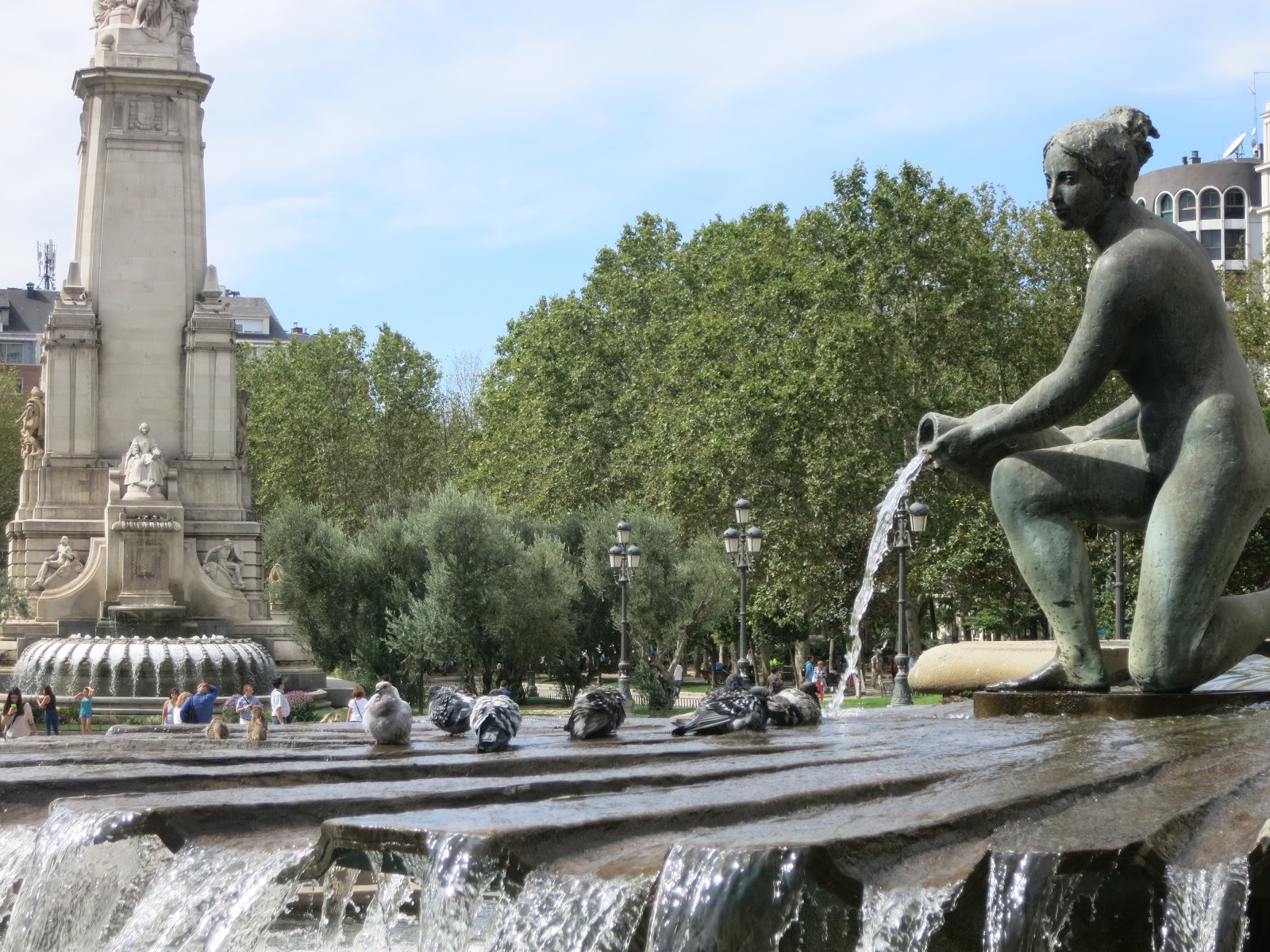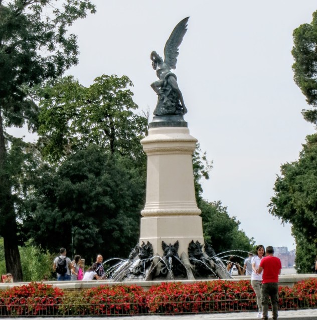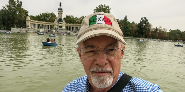 Finally she got my room cleaned, I changed and headed for Retiro Park, one of my favorite places in Madrid. It was a wonderful day. A passing lady noticed my hat and yelled “Viva Mexico”. I got the most exercise I’ve had since leaving Mexico in April. I walked a lot of miles but took lots of breaks also. First my left ankle was killing me until I loosened my shoestrings. Then it was the sole of my left foot. I was taking breaks to sit every 50 yards! Then, being a bit dyslectic, I kept going in the opposite direction from what my GPS Google Map said until I ended up at the opposite end of where I wanted to exit, where I met a lovely young jogger at the park map trying to figure a way to get where we wanted to go without leaving the beautiful park.