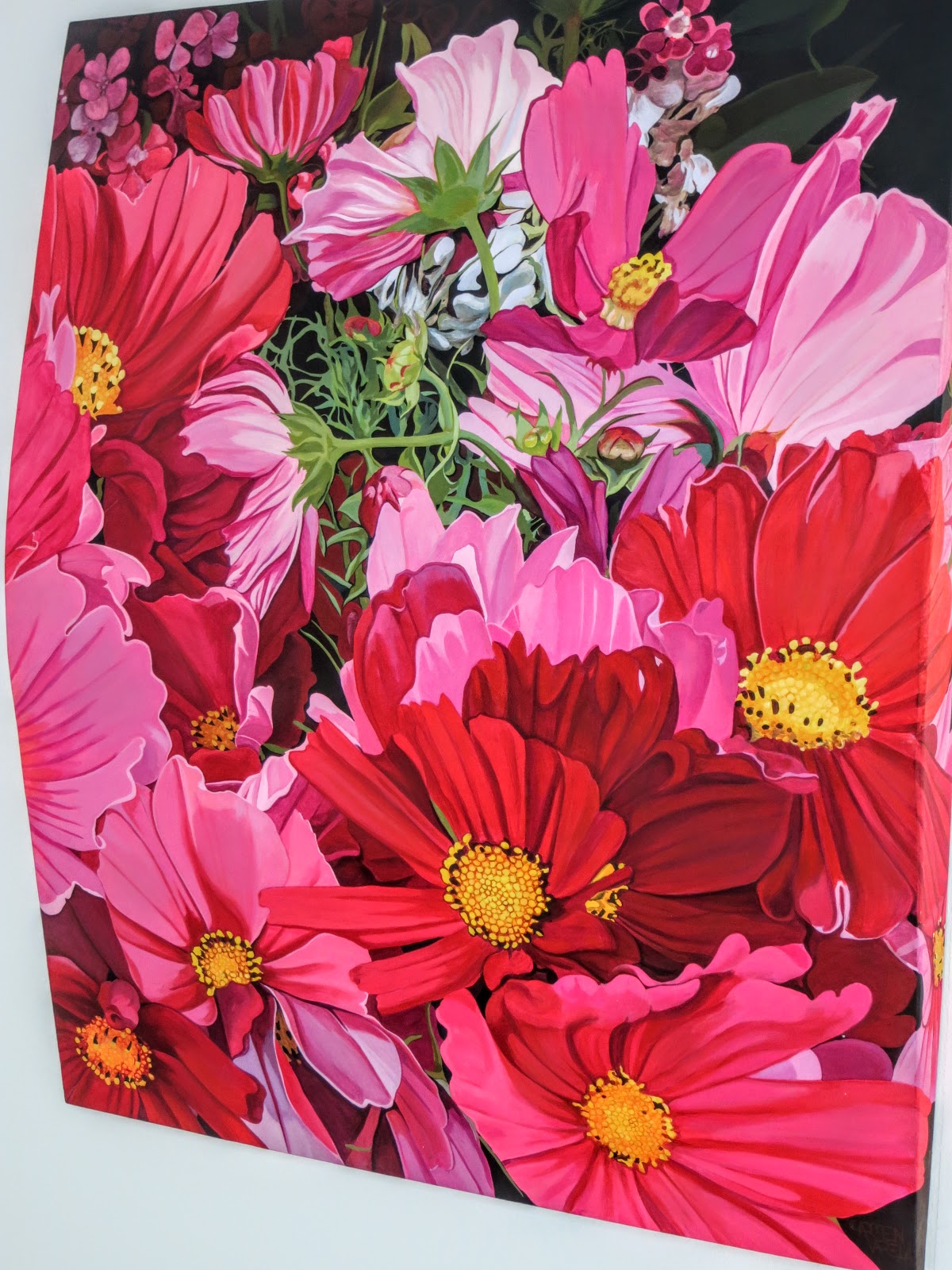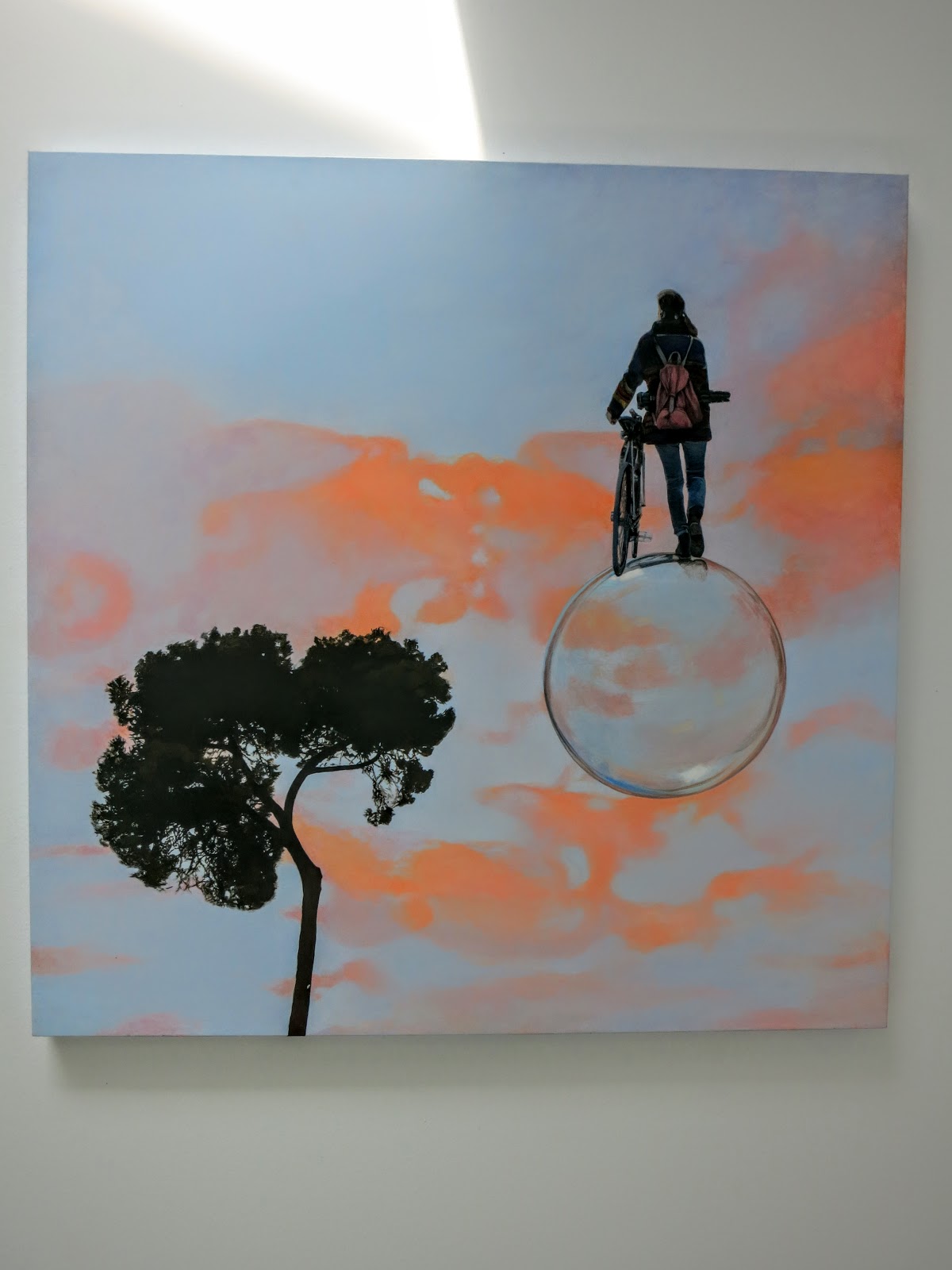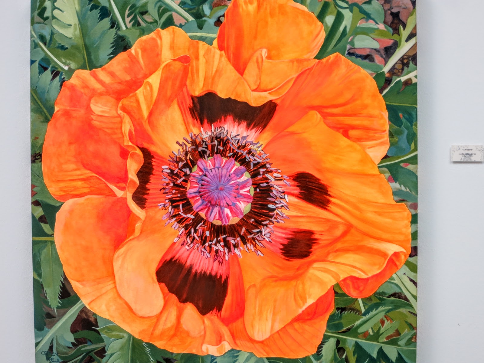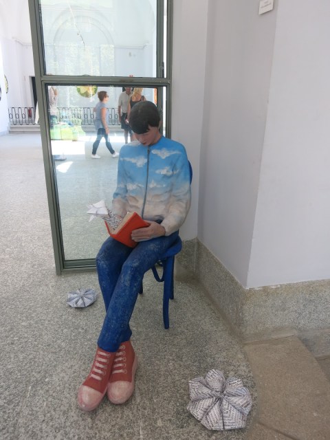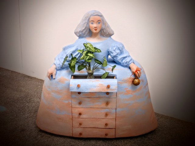 There was a Photo exhibit of well nothing. This female photographer took photos of nothing in order to focus on nothing and bring it to life? I had hoped to maybe understand what she was trying to convey so studied every photo looking for something…empty trash bags really didn’t come to life for me…so I moved on to another painter’s exhibit that was mostly flowers and really impressed me. She also had paper machete statues with her art and incorporated it into furniture. Her prices were reasonable but it was the first day of her exhibit and she wasn’t ready to sell anything. Of course I don’t need anything anymore but might frame a couple photos I took.