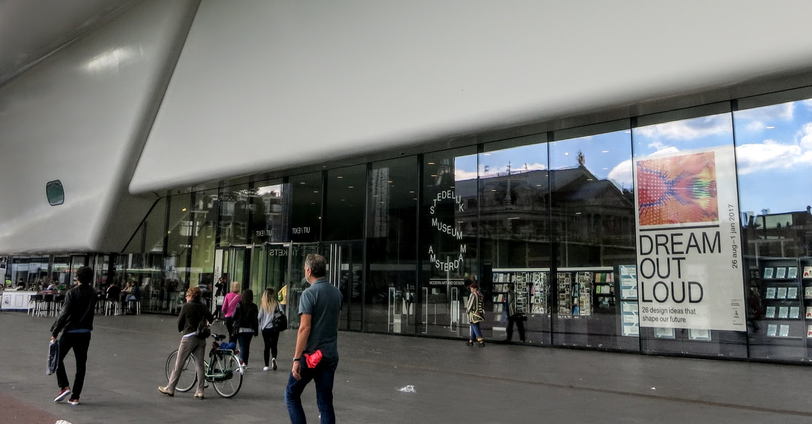 I met with Ruth, a SERVAS member in long standing at UK-SERVAS who was visiting Amsterdam. We met at the train station at noon and took a tram to the Museumplein to see a Warhol-Bansky exhibition. First we visited the Stadtick Contemporary Art Museum.