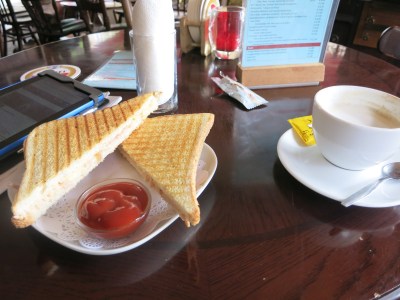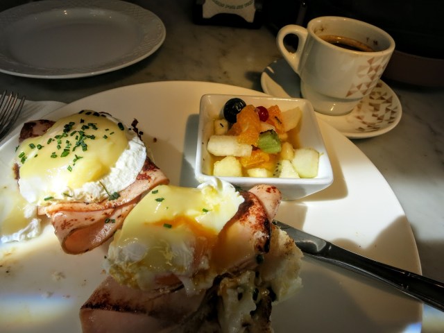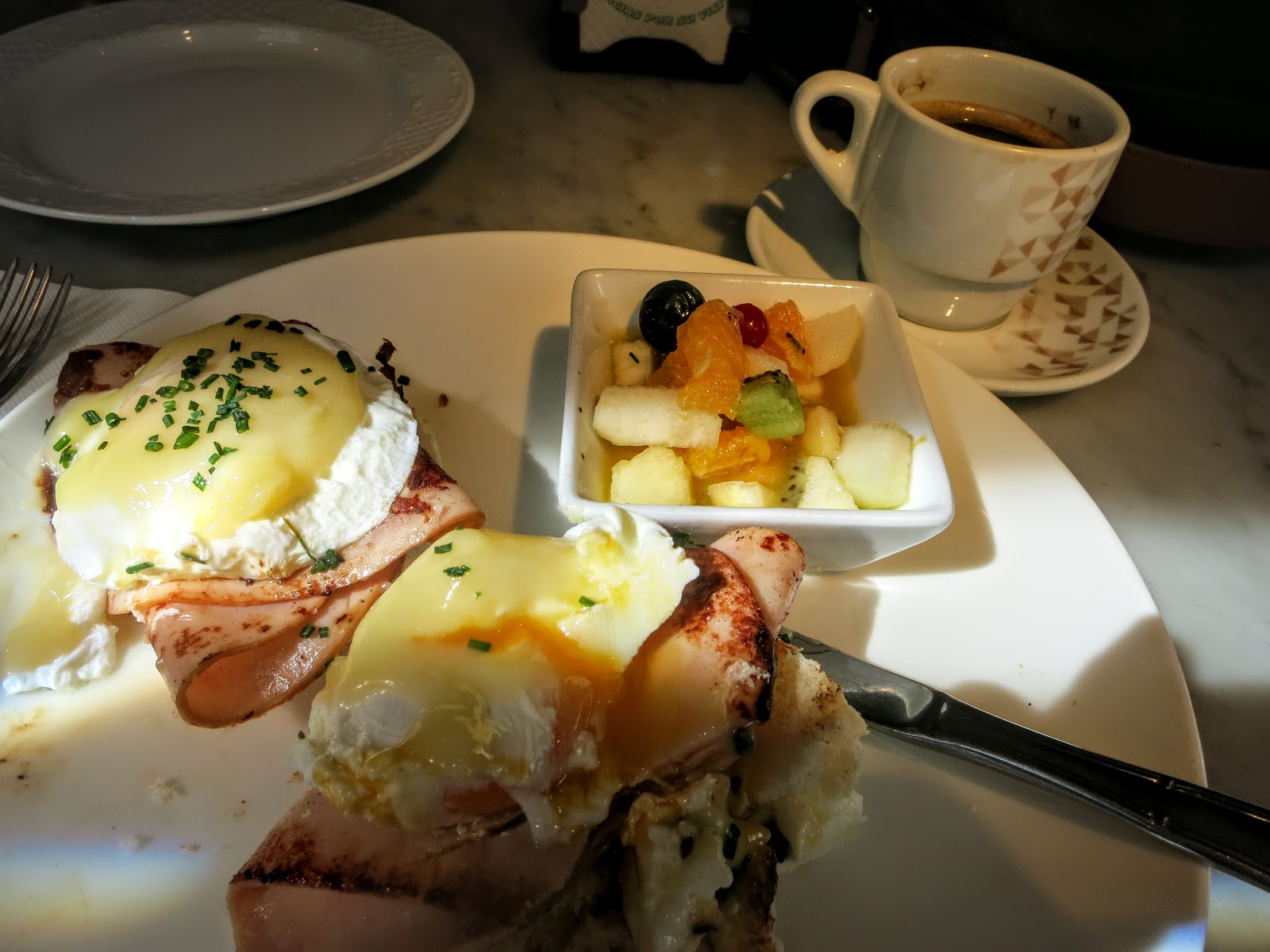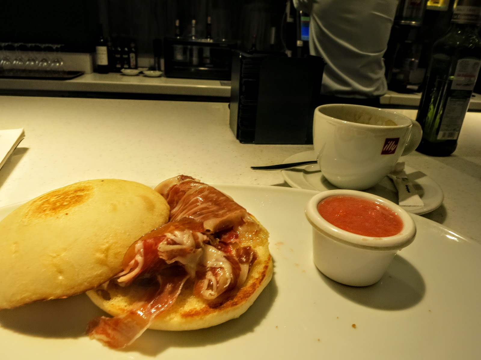 I then went to the 7th or top floor Cafeteria for breakfast, determined to have a healthy bowl of fruit salad , juice, and coffee. But no where on the way were any Spanish restaurants offering fruit salad but I felt sure this upscale Department store’s cafeteria would…they didn’t. I settled for another Ham and Cheese Sandwich but with Illy Coffee.