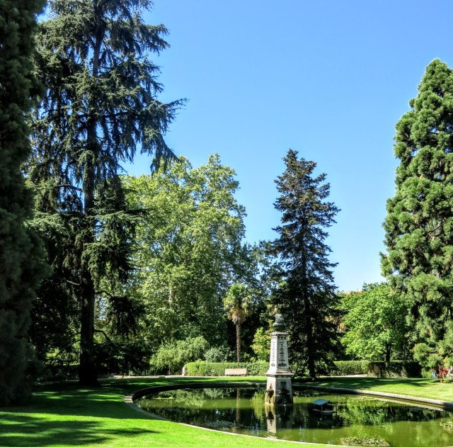 I pointed to the Map. Aqui. She said are you American…Si…er yes…I’m from Nebraska, then jogged off. I followed and saw her disappear into the park wishing I could have went with her. My problem was I didn’t want to leave the park until I found a bathroom. Free in the park but I have to pay in a place of business to use the bathroom and I was trying to save my money so I could afford a really nice glass of Spanish Wine. I found my way out of the park and to the Botanical Gardens BUT the entrance was on the other side. I took a few more breaks and finally made it. The map showed a beautiful lush park with more to see than I had time for. It was only 1/2 Euro for us Honored Citizens and I was tempted but my feet said NO. Monday would be great and maybe time to take in the Prado Museum again.