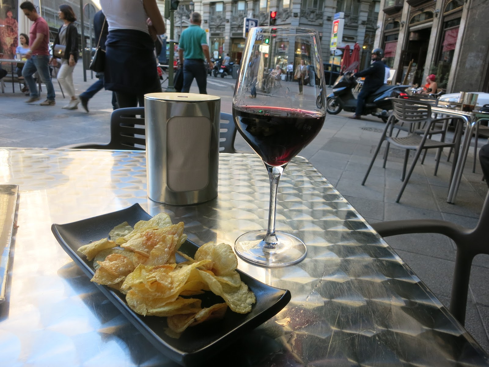 My nice Waitress from the Philippines served me a nice Riojos Wine with Olives and Cheese…then a Sweet Vermouth with Chorizo, then another , then another Riojos with Chips…I left satisfied to discover I leave tomorrow. I read the calendar wrong but the hotel didn’t. Now I’m packing and hopefully will get in a museum tomorrow before I head for the airport.