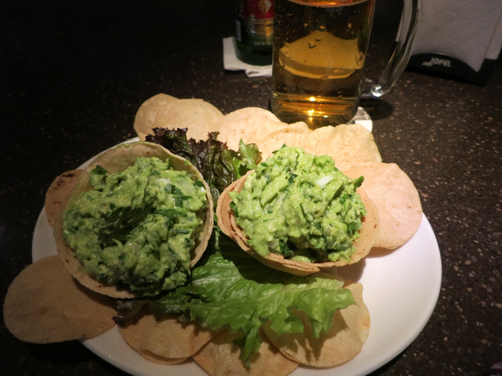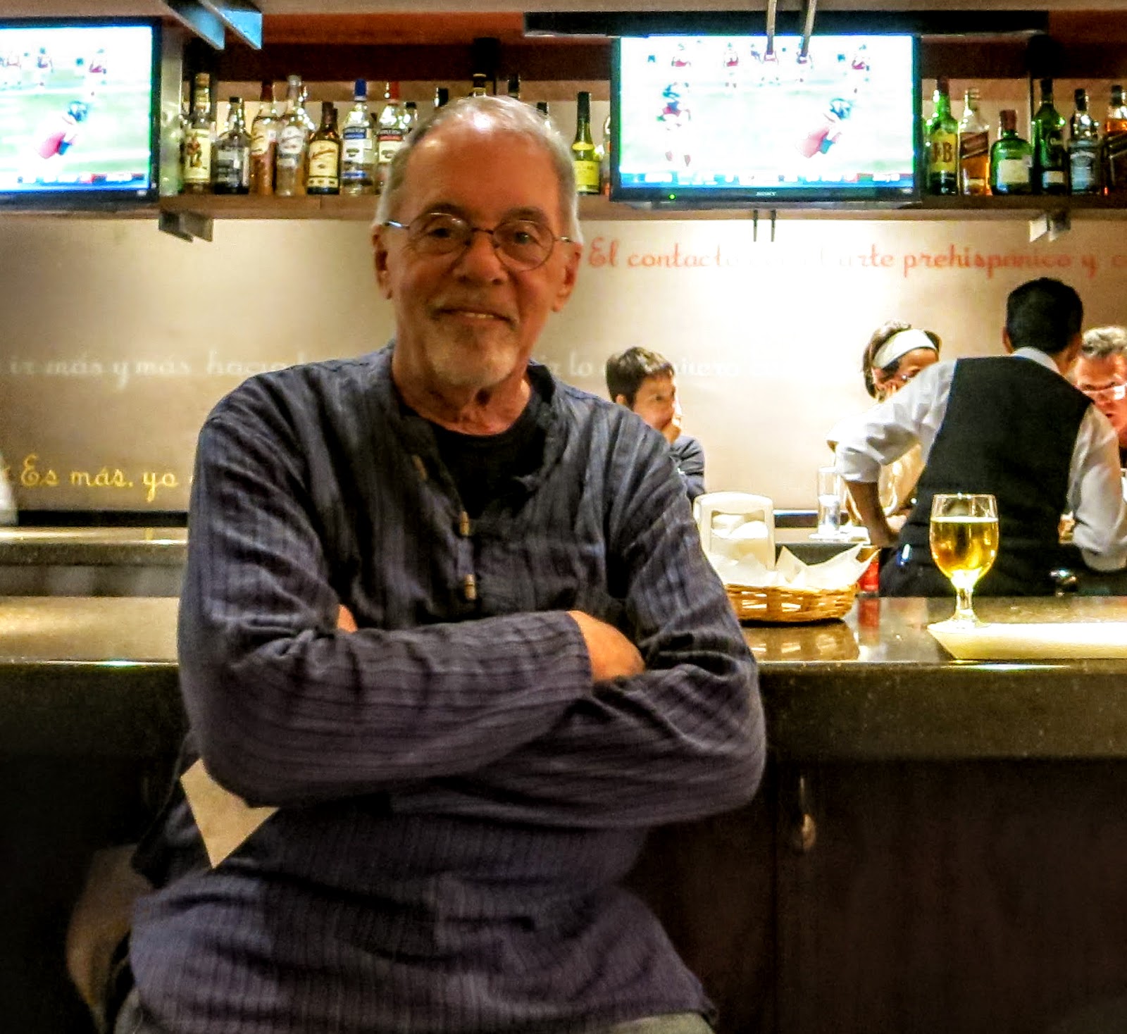 I left for Tres Bistro across the street but was early so I was the only person at the bar. Next came Alfredo the relief bartender and my friend. Then two nice ladies, Claudia and Jane from St Louis. Then Ron, my friend from West Virginia showed and I gave up my coffee for a Beer and some fresh made Guacamole to fortify myself. Then Lynn showed with her husband Kurt who just arrived in town a day or two before. I started off with some Guacamole off the Superbowl Special Board.
