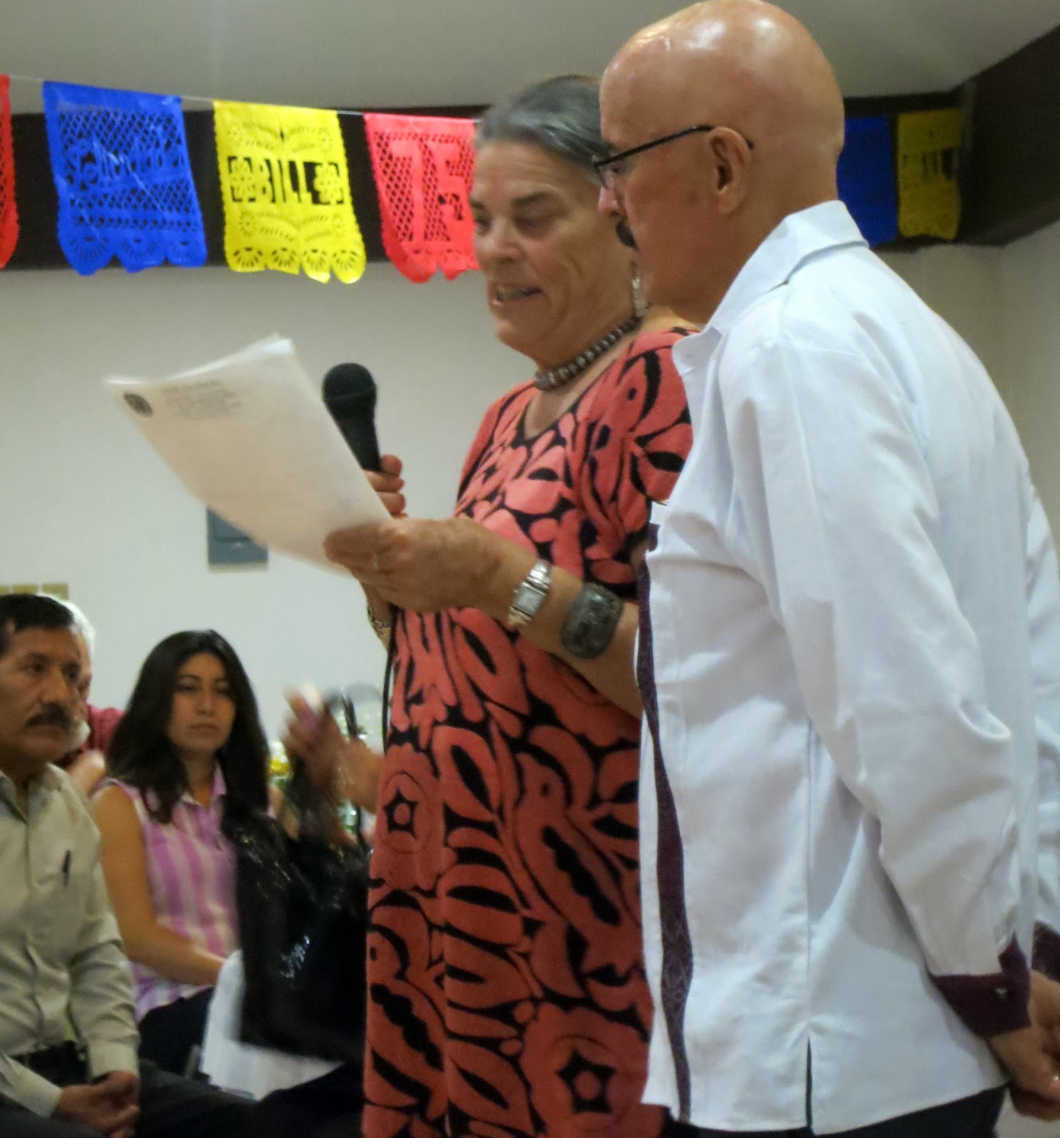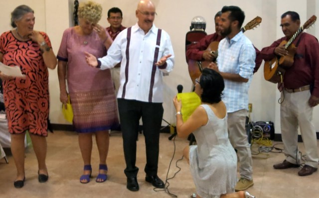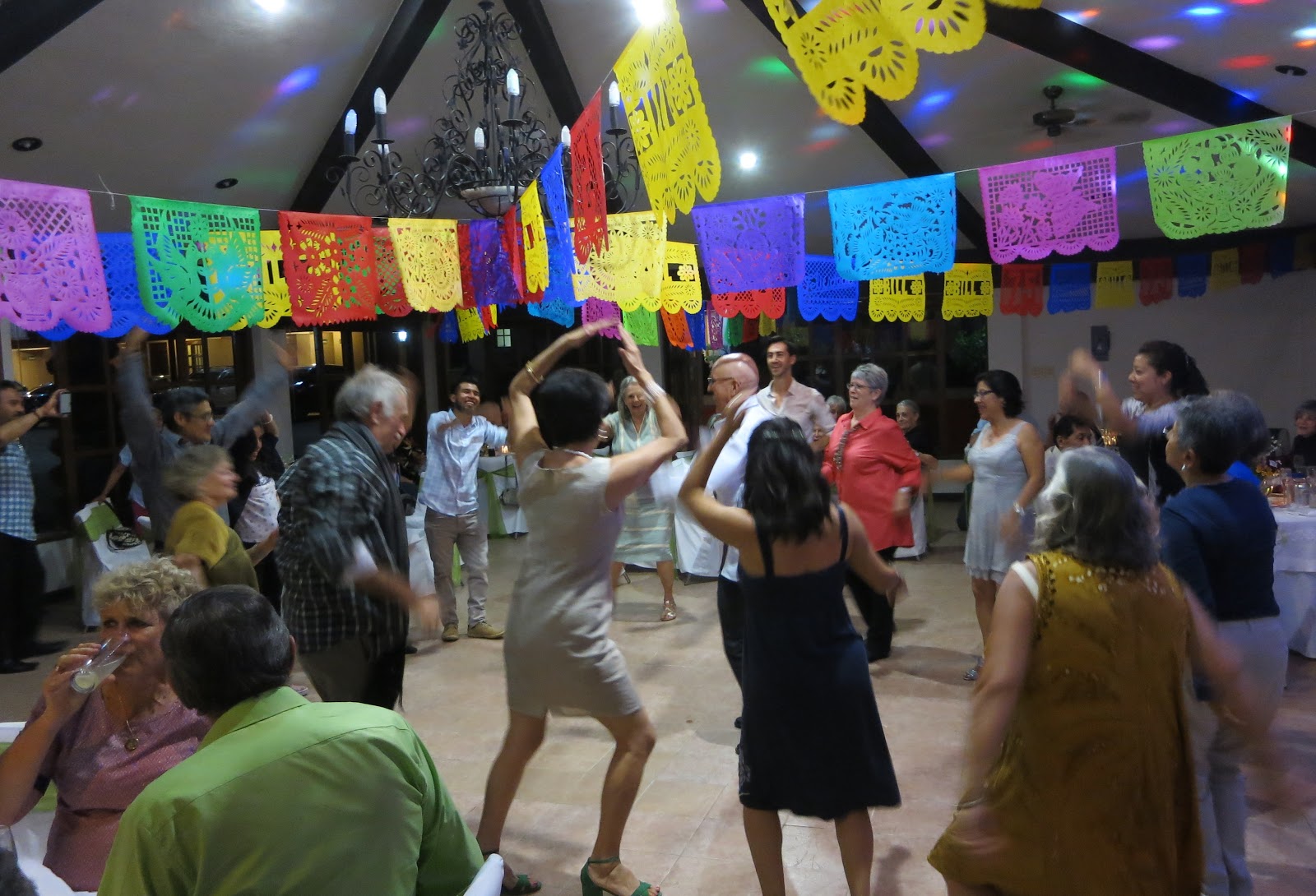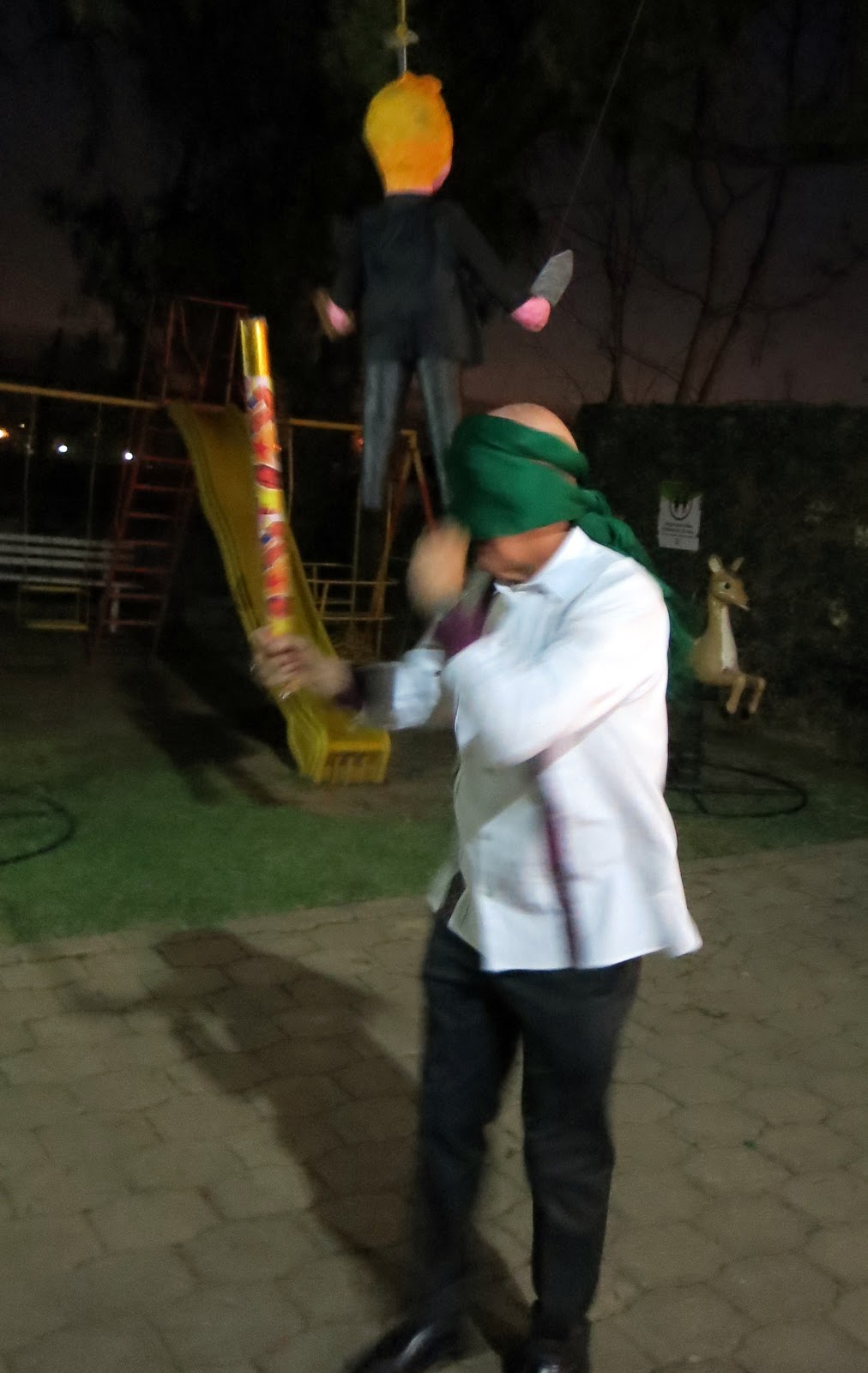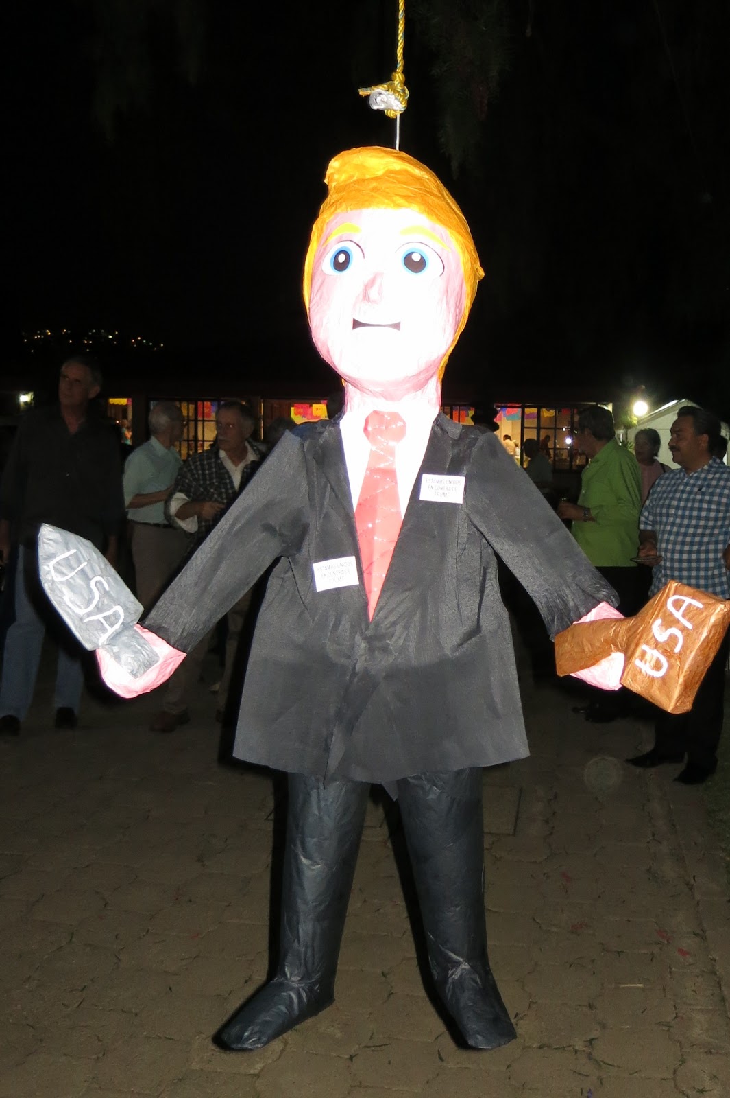 We started the party with Bill trying to open up the Pinata of Donald Trump (popular Pinata in Mexico these days).Give it your best try Bill. (click to see). Bill passed the baton after about 5 tries…he was blindfolded in the beginning….until anxious participants beat the hell out of the Pinata and candy flowed…along with stick on messages for everyone that said ESTAMOS UNIDOS EN CONTRA DE TRUMP…I think means we stand united against Trump.