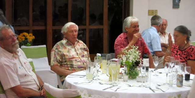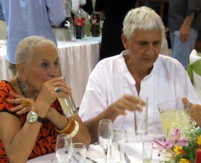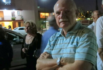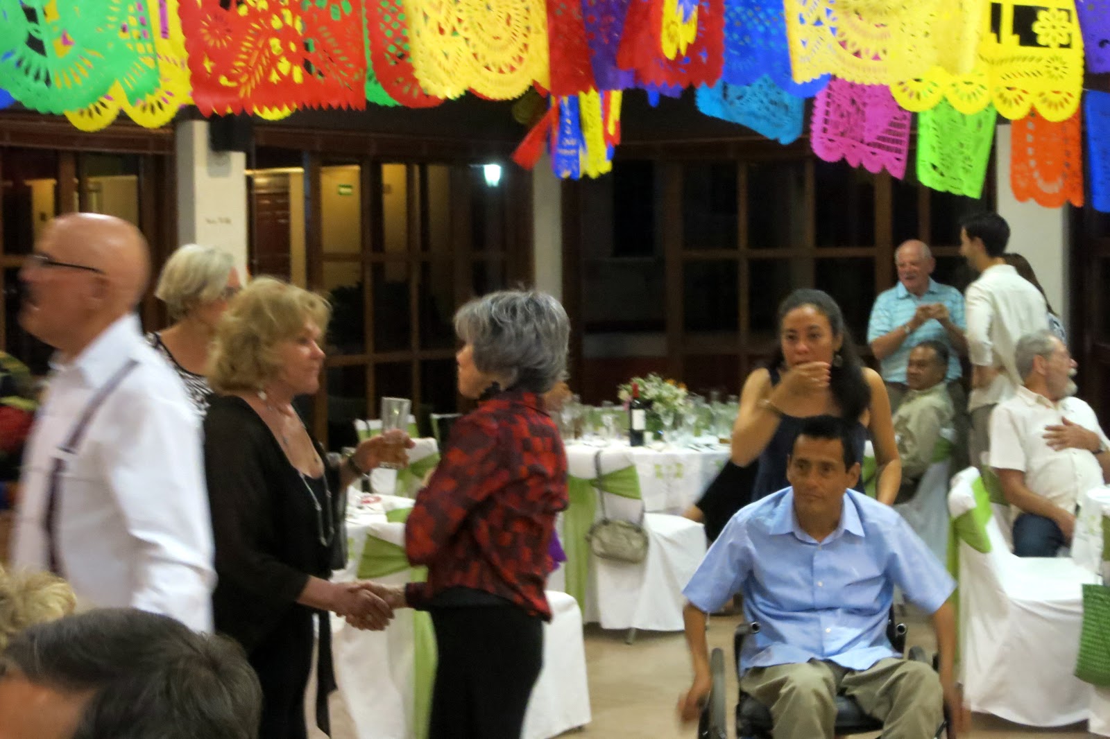 The Hotel he contracted with for the banquet room, entertainment, food, and facilities was a little behind when we arrived. Don and Pat showed up as did Pierre and Hans, Alan and his wife (just back from 6 weeks in Vietnam) Michelle,Peter …well most of the people I knew or were acquainted with. Bill poured everyone Mezcal when they arrived and the socializing began.