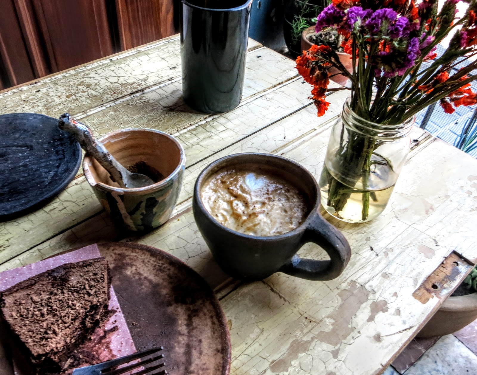 When Steve left I felt like I had to try the famous Pizza’s they make here but wasn’t hungry after Cappuccino and the gluten free Chocolate Tart I had…pure Chocolate…pure Joy! I ordered the house Pizza to go and had a Natural Kefir…made on premise and also really good.