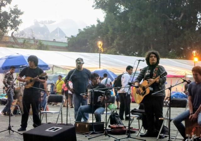 There was an interesting band about ready to play at the Zocalo when I arrived so decided to see what they offered. Mexican Water-boy’s “If I Were a Fisherman” ..Chairs were set in rows for this and were full…but the rain was threatening as the band started…STOP…the sound man said the rain was shorting out the electric accordion…so he switched to the violin and the band’s opening number amazed me…If I were a Fisherman by the Waterboys from Ireland. The Rocket 88’s used to play that when I would walk in at Warsaw Walley’s Blues Bar. It was like Hail to the Chief…they were regular customers at Dave’s Fish House…that’s what they called my restaurant just down from Wally’s in Phoenix.