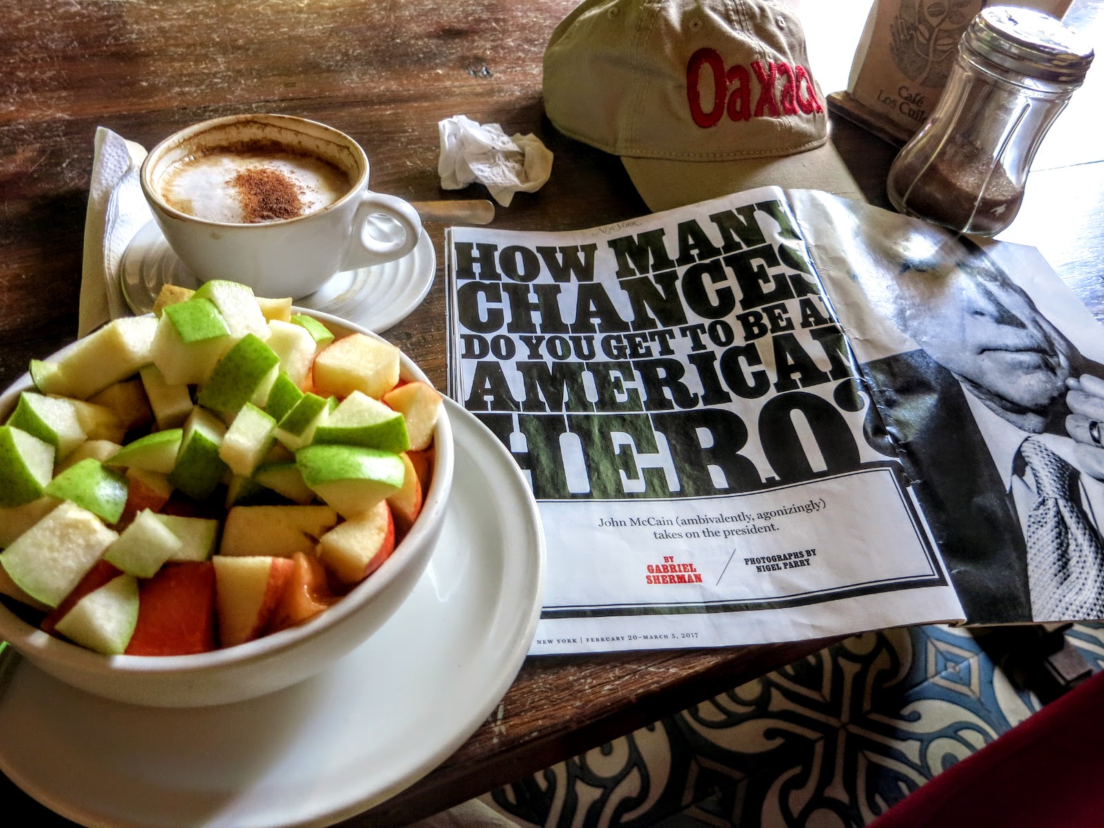 I was in no pain so fell behind and tried to keep pace until my ankles started hurting…and I was on my street, said hello to my neighborhood restaurateur. He finally put up a sign…on our building..but tastefully done. We chatted and I told him goodbye until June 5th…bought my ticket with the help of American Airlines Frequent Flyer …used to be you paid in miles…now you pay in miles and cash for all the surcharges…$100 and they would only honor F Flyer miles to Mexico City even though I paid over $700 to fly to Oaxaca round trip on American…twice! So I had to buy another round trip from Mexico City to Oaxaca for another $100 but I hit the wrong web site that was phishing as Interjet airlines…so they charged me a service fee to book…and because it was in Spanish only…I booked the wrong flight time on my return so after paying for it, I realized what I had done and went to the real airline site and tried to change it …no problem…just another $50 fee to change a $100 ticket. My Frequent Flyer free flight has now cost over $250…so I save around $400. Take what you can get.