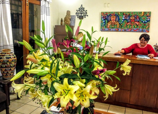 Last goodbyes and bits and ends to wrap up my visit, close up the condo, start packing, finish projects, set up for my return. Since my arrival I’ve strove to walk everyday. Starting out was painful because of my “intermittent claudation”..poor circulation in my legs due to hardening of the arteries. I would go 30 -50 yards and half to stop for a 10 minute break then repeat when the pain returned another 50- 90 yards down the road. …and so on. Yesterday I took the bus to the library but then walked around the park then up hill to take some photos. I never walked up hill here unless it was necessary…and yes I did have to take a break BUT it wasn’t the pain in my legs but just out of breath…I had 2/3 of my right lung removed due to “Valley Fever”. So when I did reach the top it felt good. I walked all the way home with NO pain. This is a HUGE step for me and gives me encouragement. I thank Oaxaca for that. It is a pleasant walking city with lots of sights to take in along the walk. The city is always changing with the seasons, with the night vs the day, different flowers always blooming, beautiful parks, sunrises, sunsets, perfect weather year round. I’m not anxious to return to Arizona except to see my family and friends.