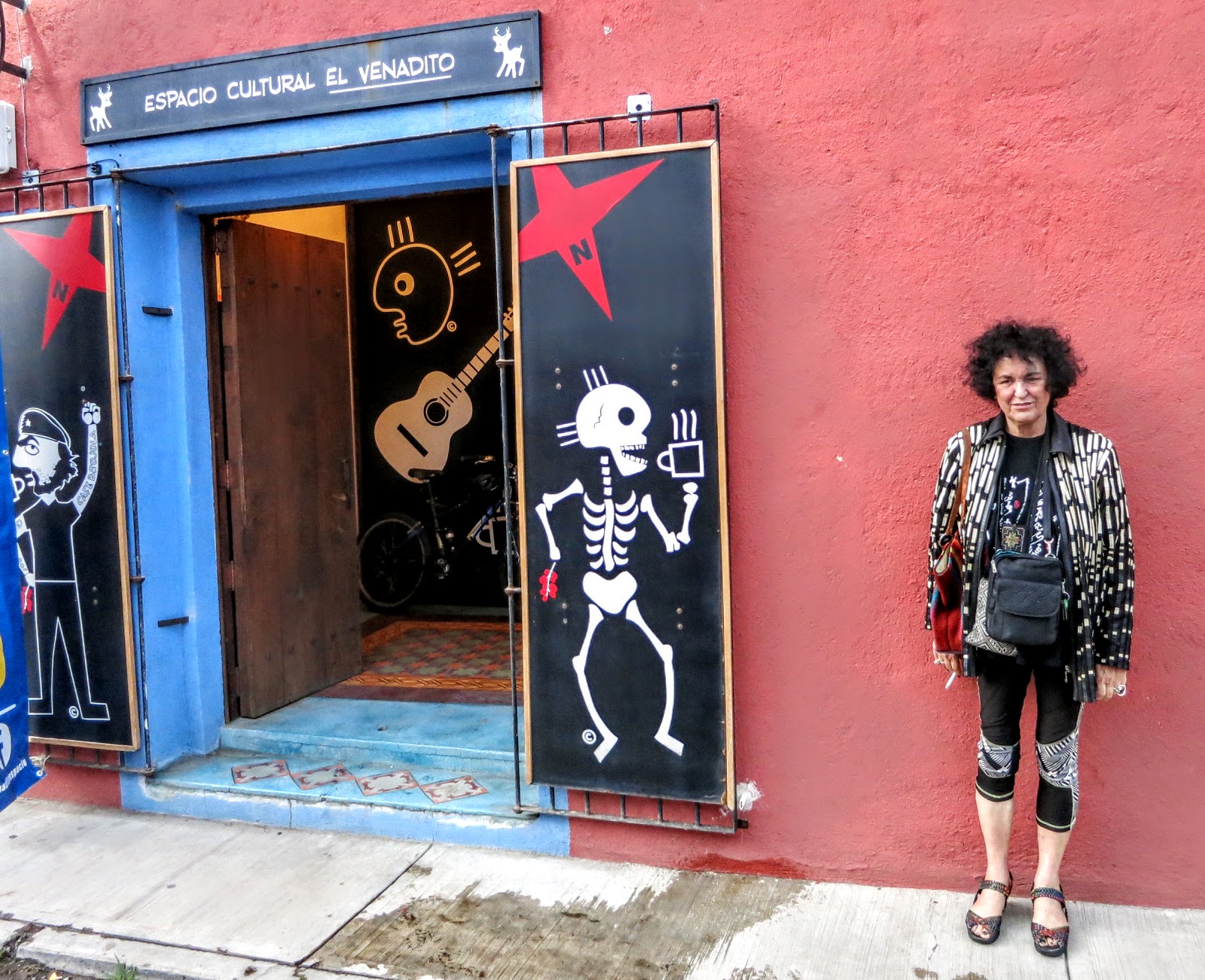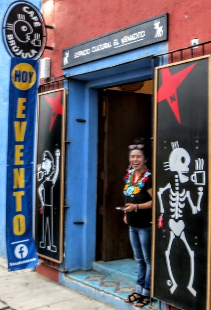 We asked them to drop us near a Coffee House owned by Lila Downs, a world famous Oaxacan Singer that lives above the Coffee House. They were having some Cuban or Brazilian band that played unique music. My friend Zoe told us about it and she was there when we arrived after walking in a picturesque neighborhood I seldom visited…so I took some pictures.