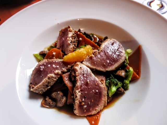 I had my usual Broiled Salmon and Roasted Vegetables. I ended up taking most of it home.