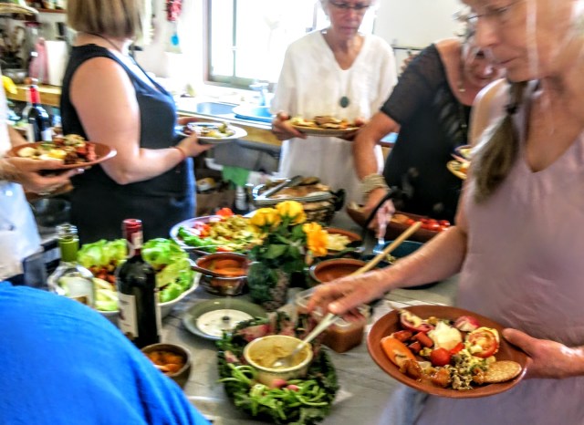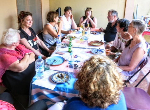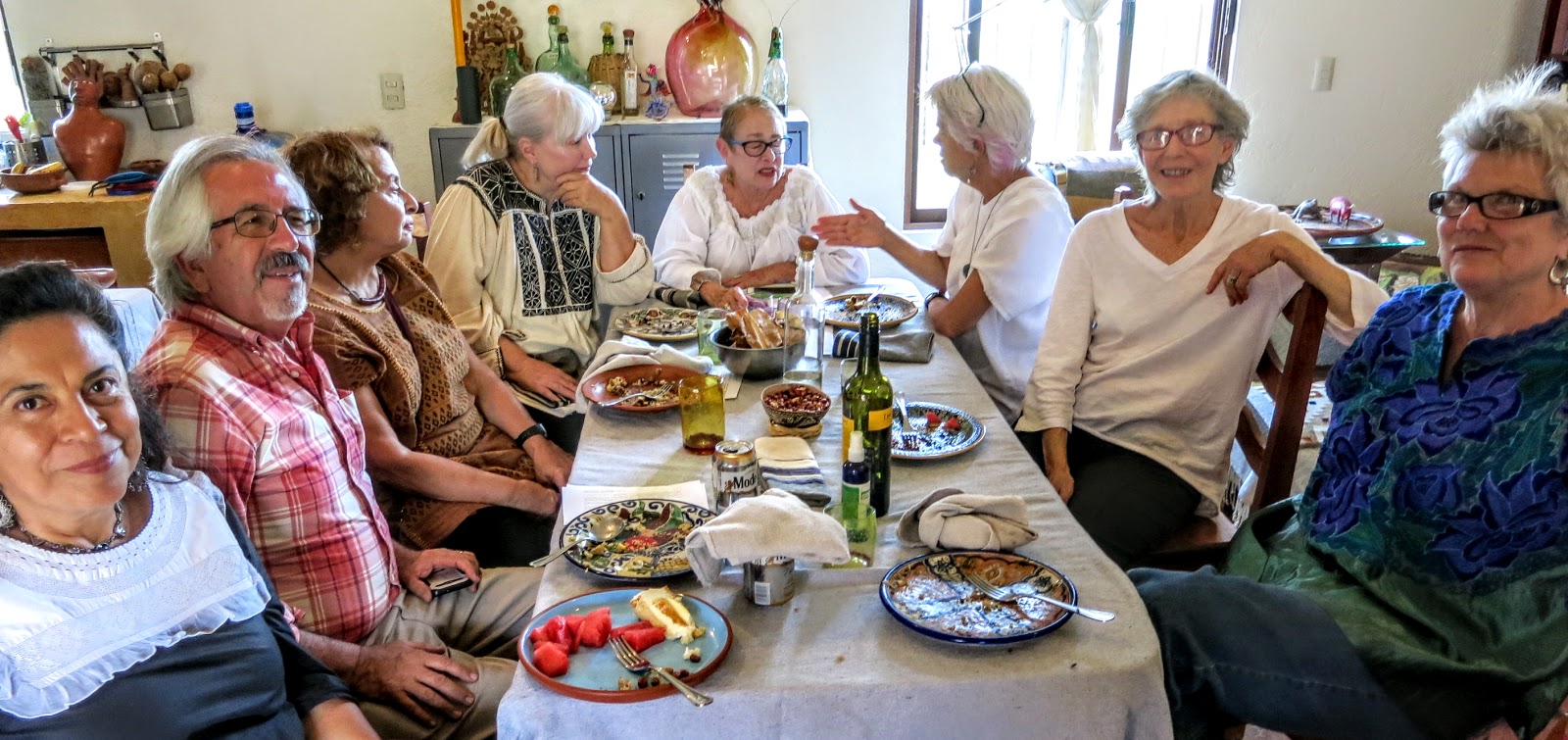 On Sunday, we attended a fundraiser for an Organization that supported Latinos in America that needed legal representation to apply for Citizenship, Green Cards, Work Visa, or to fight deportation where families were split up…as in the case of a lady in Phoenix that had been in the USA for 17 years had children there, worked and paid taxes, applied for legal aide and had been granted asylum under Obama’s Dreamers program but was sent to Nogales where her parents awaited her to take her back to Oaxaca…along with a few others. Hundreds showed in Phoenix to protest and try and block her deportation but to no avail. The Legal Aide Fund is supports by a number of groups including Black Lives Matter, ACLU, etc. Norma a 5 year resident of Teotitlan de Valle hosted the dinner along with Jackie. There were 20 attending the Pot Luck. We took a Taxi with a Corn and Bean Salad with Avocado, Tomato, Red Pepper, Pineapple, etc…it was well received. Norma supplied some local