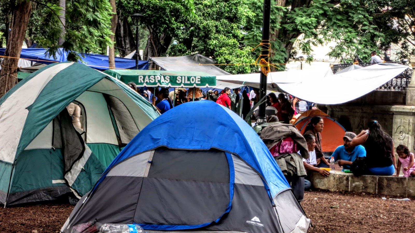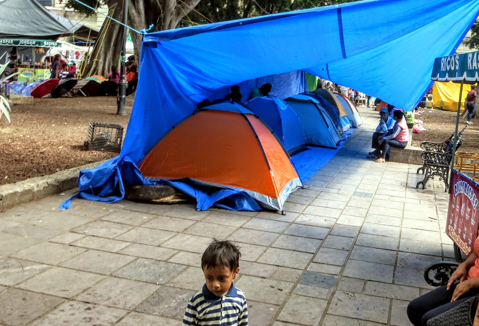This afternoon I visited to Zocalo to find a Carnival atmosphere with Music, activity of all the visitors mixed with the Protesting Striking Teachers that permitted Oaxaca to collect it’s garbage after a week of it piling up, in return for occupying the Zocalo along with all the tourists. I guess they wanted the attention? All the children’s rides were removed and replaced by paid protesters to move into tents and under make shift awnings.