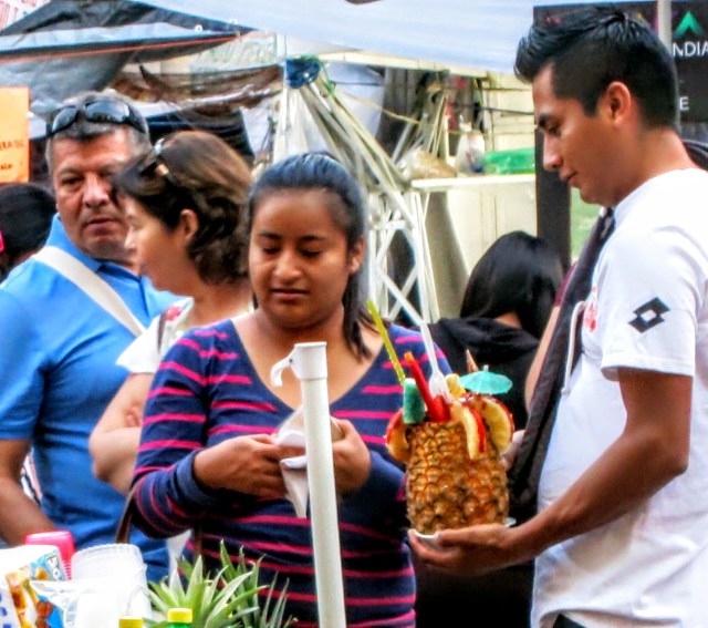 I paid my 40 pesos for unlimited small samples and wandered around for around an hour while “sampling” and watching the entertainment but rain was coming so I decided to forgo the parade. That was the next event. I took the bus home in the rain. Five people came to the back of the bus and sat next to me. I noticed they spoke English and were acting like tourists in town for the weekend.
