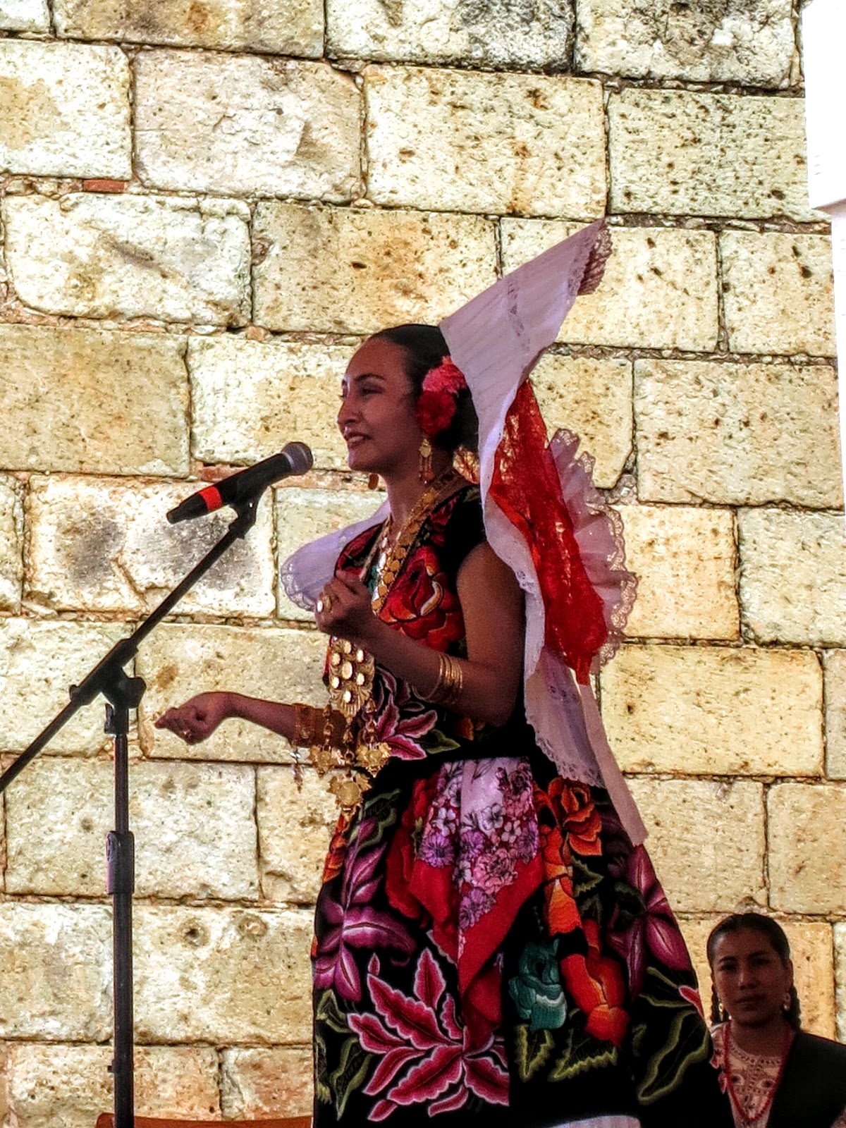 This weekend started off with Festival de Mole at the Emotomical Gardens at Santa Domingo. Different representatives from the State of Oaxaca were taking turns talking about their pueblo and where they lived.