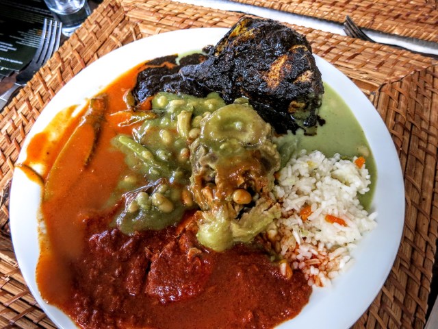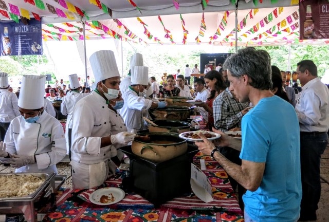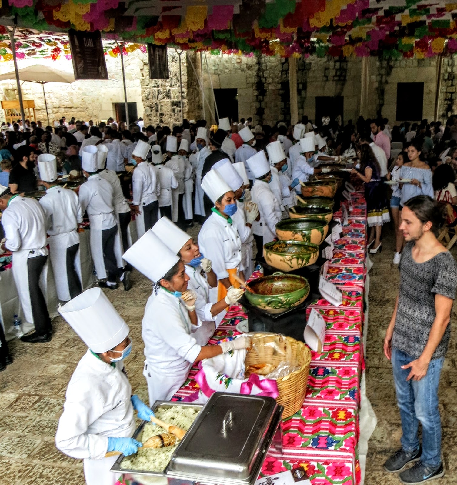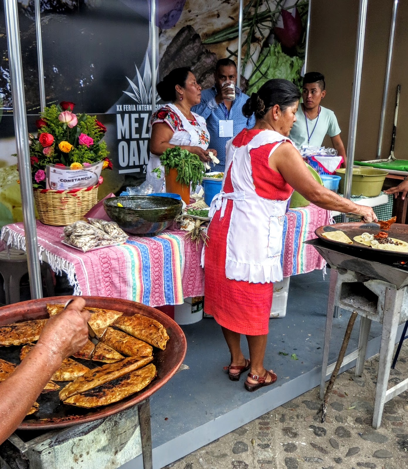 Live Music was playing on stage and when a waiter didn’t approach I found “Pedro” who was quick to bring me some appetizer’s to start and a Mescal glass with a beer. Drinks were free and food was all you can eat but Moles are filling and there were over 20 of them being offered from restaurants all over the state of Oaxaca.