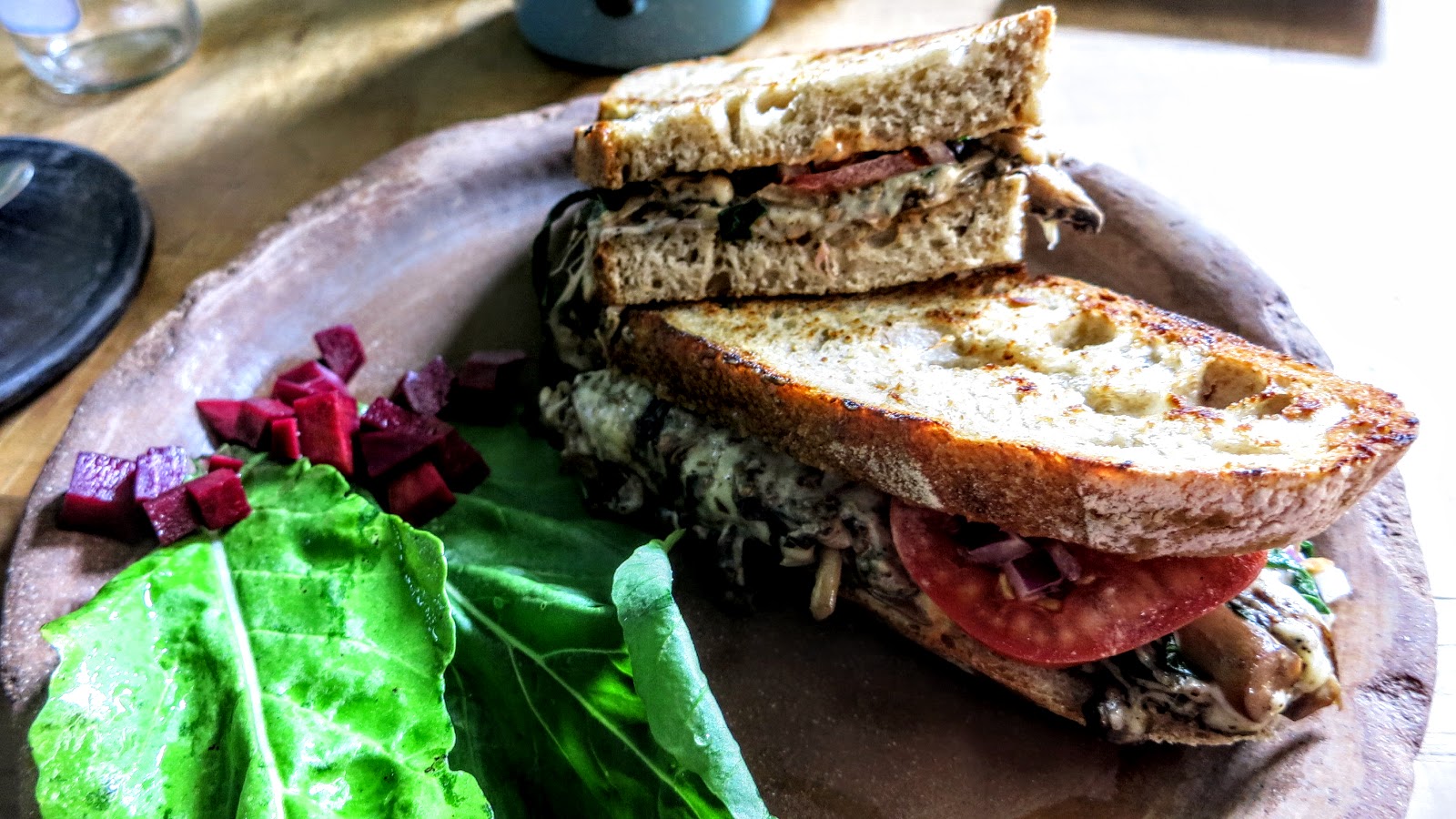 Well most of this week I’ve laid low but today my back was much better so I went to the Bakery for a Mushroom Tomato on Sourdough and coffee.