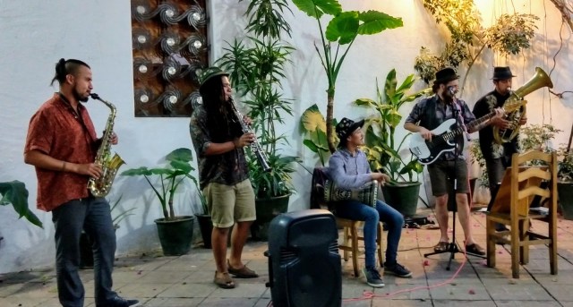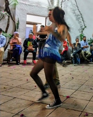 Then we took a taxi to Sol y Luna to hear Eric Louis from Lafayette, Louisiana and a mix of Blues. A lady looked in so I encouraged her to join us. Mary from Portland Oregon did. Her and Richard chatted a lot while I moved over to the bar to be close to the music. The crowd conversation interrupted my ability to hear….as did the Mescal I ordered at the bar for a table of Oaxacans as well as the singer Eric.