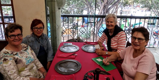 A new day in Oaxaca starts again with a chill. Helen arrived with Ginny. She had a touch of the flu bad so Dr Z gave her antibiotics and scheduled her to return. Helen was back from 2nd visit to Doctor and feeling better so it didn’t develop into pneumonia. She brought me some Trader Joe nuts I requested so I paid her a visit and we caught up on since last year. Returned with my nuts and played dominoes at the library.