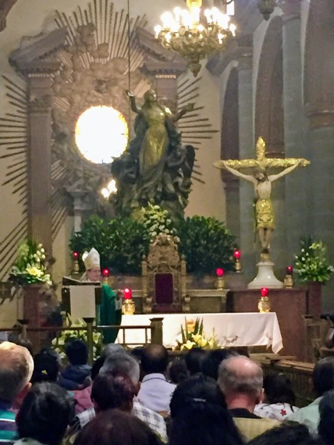This morning I attended Mass at the Cathedral with Helen and Ginny so we could hear the Pipe Organ brought over around 1750 or thereabouts. The high Mass was impressive and packed. I took a few photos but will return again for more.