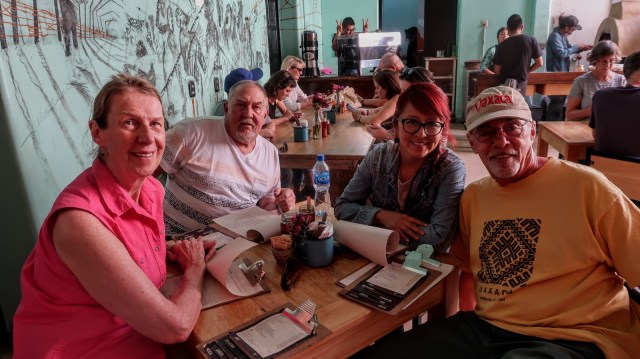 We had a nice lunch and after a brief stop at the market to get some chopped fresh vegetables for my soup, we crossed the street to the Butcher and I got some great bacon sliced right off the belly. We shared a Taxi home and agreed to meet at Berlina tomorrow at 6 pm with Kurt and Lynn. They just returned from Puerto Escondido and will be leaving for home in Humboldt County, California.