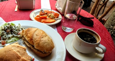 I lost. Richard and I stopped to have a drink and bite to eat but Tapas y Vino couldn’t make him a Margarita so we tried a place he recommended at the San Paulo Cultural Center. The emphasis was on Middle Eastern food so we had Tablu with Empanadas and Chicken Shawarma. The drinks were overpriced for what they served as was the food. Very unspecial so we stopped at the Zocalo for a glass of wine and returned home.