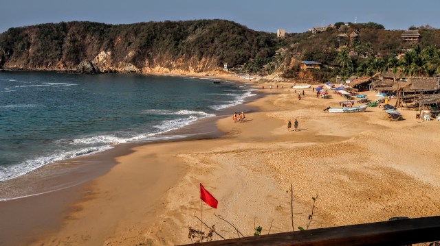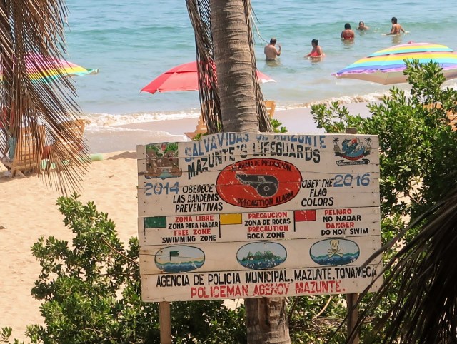 We decided just to sit and watch the surf, visit the Turtle sanctuary, Zipolete, and eat in different restaurants. Tonight was to be an Italian place that was closed when we arrived with no sign other than “Open”? So we went to our 2nd choice and the same. Both were touted to be the best restaurants in Mazunte. We stopped into another on the main street that was OK then retired. I spent most of that day washing wine out of my clothes. I packed two boxes of wine, one broke and spread a liter of red wine on everything in my suitcase forcing me to throw out two shirts and a pair of undershorts. I may throw out more when I return. I forgot my belt so had to walk around holding up my shorts. I will manage.