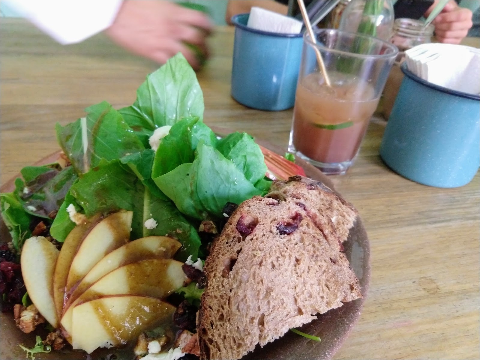 I arrived at the Bakery and ordering my Salad and Home-made Ginger Ale. I started reading more of Blue Highway…almost done…great book. An attractive lady came up to my table, kissed the lady across from me with a European greeting in Spanish, sat down and ordered the same salad. The other lady left and I remarked on how good the salad was that we were both eating. Sophie from Antwerp Belgium concurred and we talked about Antwerp, her travels alone to South America for 3 months, exchanged emails, then as we were getting ready to leave…she gave me the European hug and kiss on the cheek. I almost fell over trying to hug her back over the picnic table. What a lovely day.
