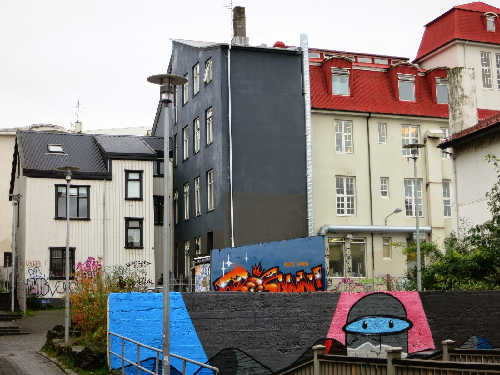 I went through customs then picked up my bus pass and some kronas for spending money, hopped the bus and was off to the capital. The bus arrived at the station in Reykjavik and I got a taxi for the 10 minute ride to air b and b room. It was 1500 Iceland krona or $13. Not to bad. My room was 3 flights up and I was huffing and puffing when Sam greeted me at the door of his apartment. My room did NOT have a private bath but a shared one down the hall and was more like a closet. It was too late to complain and was not the first time I have been lied to or misrepresented and over charged by Air B N B. I don’t like paying over $400 for 5 nights…if you can call checking in at almost 1 am, a night. Sam had no suggestions on where to go to get some food except a 5 minute walk. I spent an hour unpacking and getting settled in my postage stamp room and then headed out on Saturday night. The town was crowded with drunks. Shouting, falling down, arguing, plastered drunks. They were lines out of every night club or disco joint in the downtown. Empty wine and beer bottles around the sidewalks BUT everyone was stylishly dressed for the night out. Friday and Saturday are the two nights every young blooded Icelander is out to party. They all work during the week so this is it for them. People were polite or just didn’t see me. I finally found a line at a hole in the wall window to order and pick up…hot dogs. I jumped in line and got a dog (Iceland uses lamb, beef and pork) with the works and chips to go.