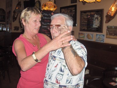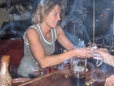 a drink from Charlie’s Frog Bar and then moving away. She was trying to make us happy and
