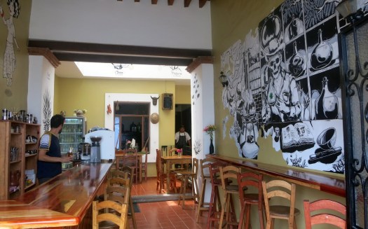 I still had a few minutes to browse the neighborhood. This was the most familiar area in the city, next to Colonial La Noria where I live, but each year brings change. This Cafe was new so I heard about Art y Chocolate Gallery which was another new place. I stopped in out of curiosity and discovered some wonderful paintings , sketches, watercolors by the owner as well as a mix of ceramic art , T-Shirts, and CHOCOLATE…it was displayed in a nice case at eye level and I thought the candies were fake at first…just another art creation. They were art but real Chocolate and the best ever in Oaxaca. Very much like my favorite at Tres Bistro but all different sizes, shapes, and colors. I almost bought them out after having a sample but controlled myself and vowed to return soon.